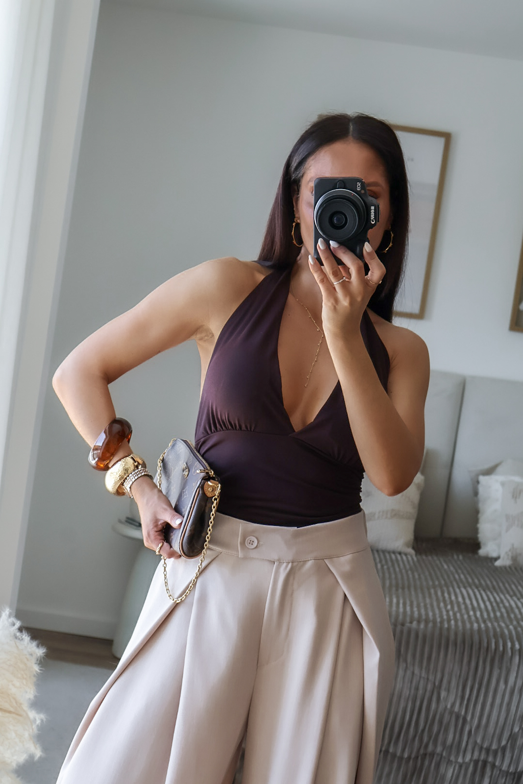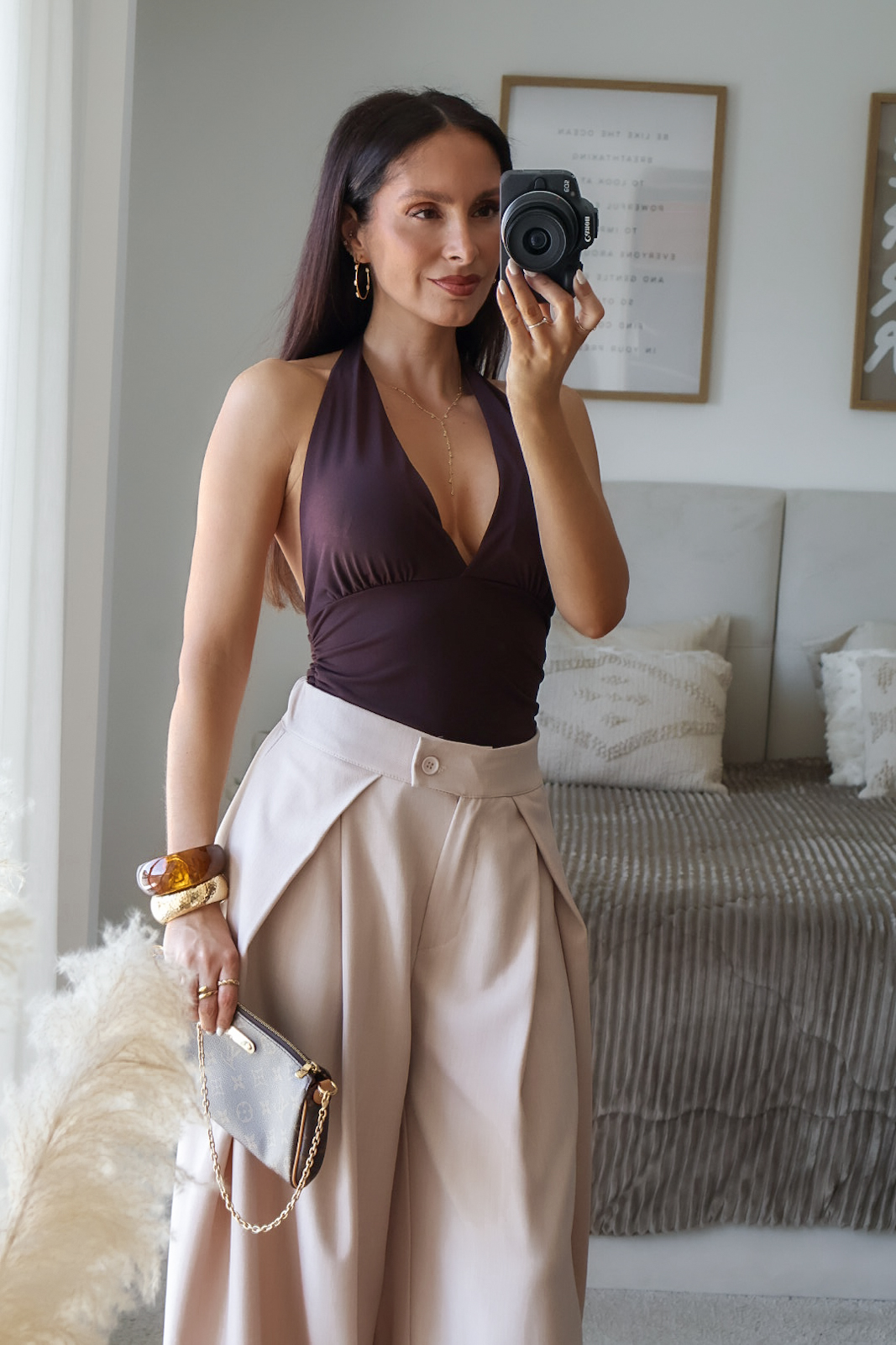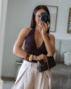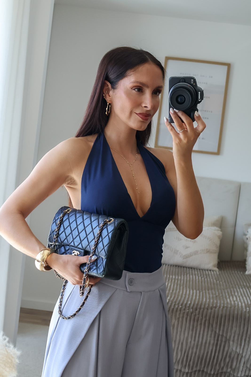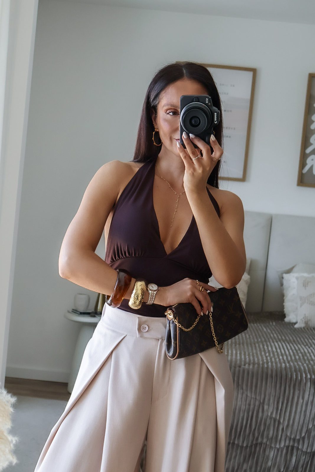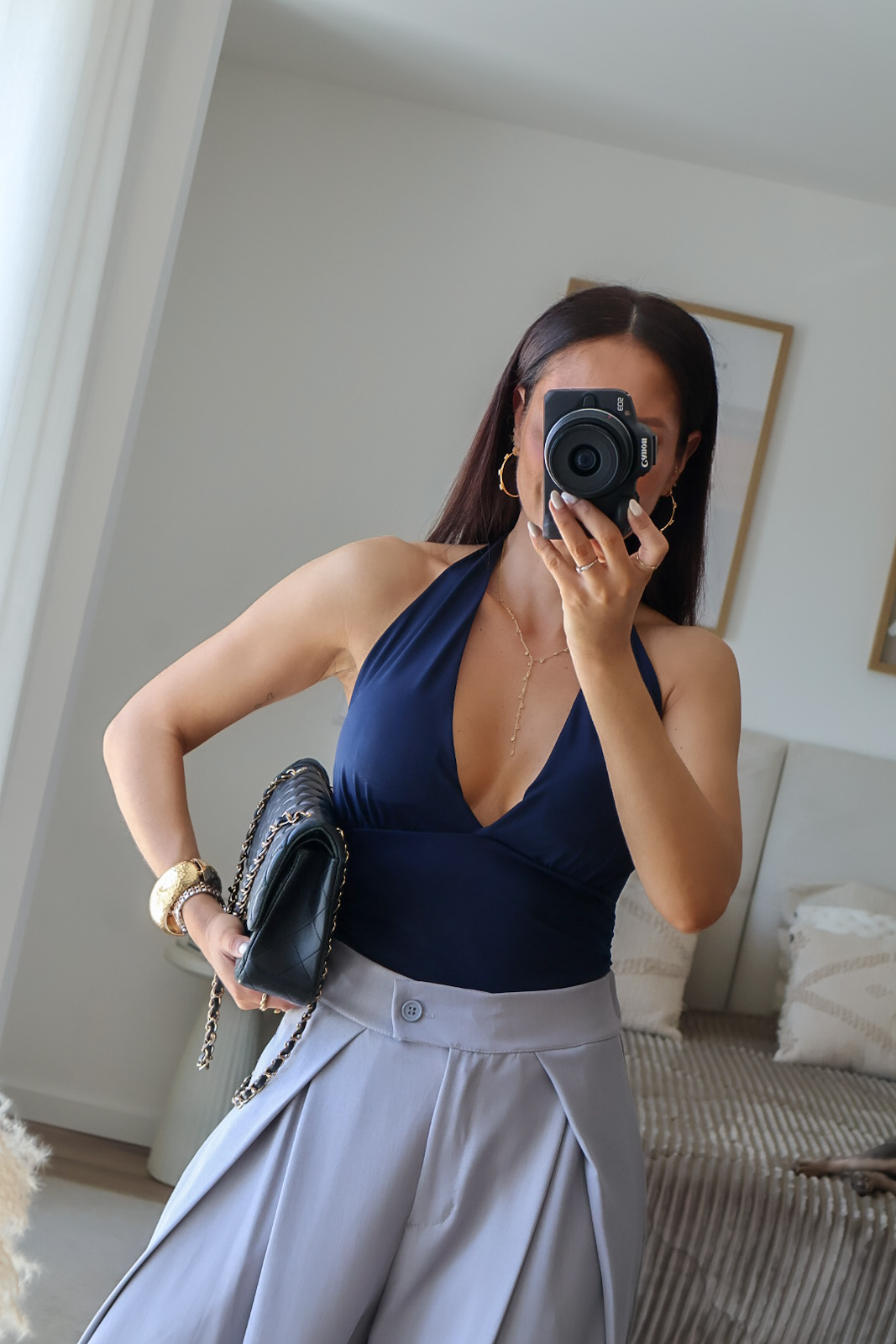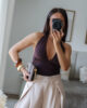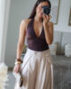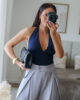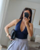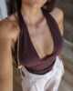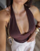 Top halter com decote em V. Tem elasticidade. Tecido macio.