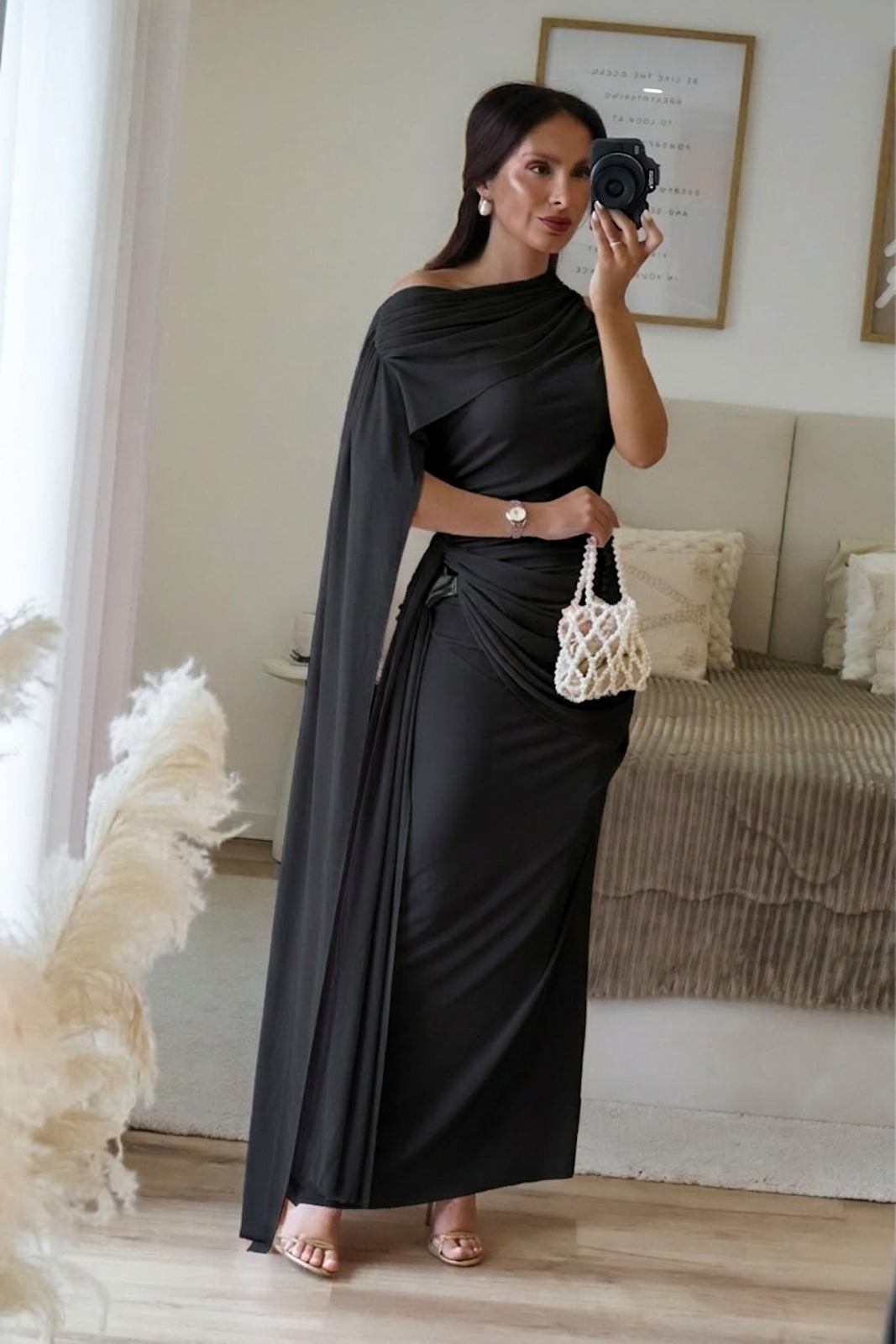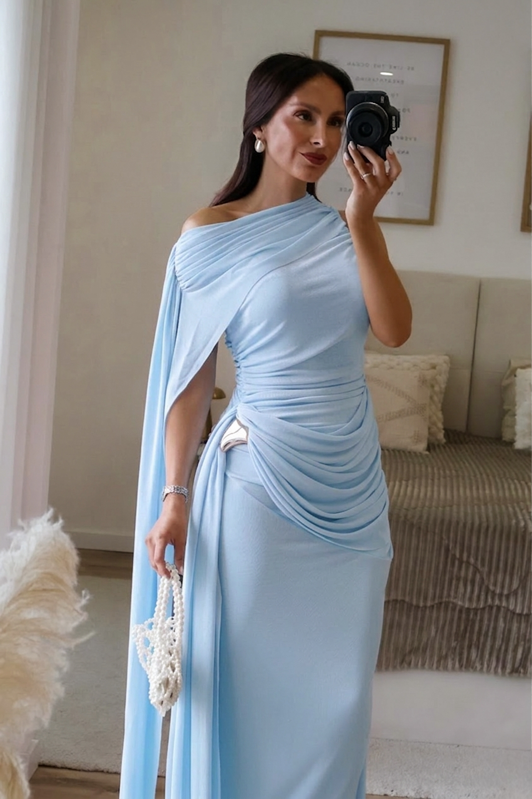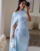 Vestido com um corte assimétrico, super moderno e um detalhe de capa lateral que dá um movimento incrível ao andar. Os drapeados estratégicos na cintura ajudam a definir a silhueta de forma muito feminina. Ideal para aquele casamento ou evento/jantar especial! Todo forrado. Veste tamanho real.