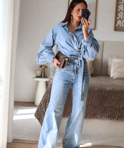 • Calças de Ganga Inspiração Levi’s Wide Leg Modeladoras Push Up