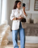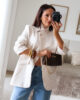Blazer com gola com risca diplomata. Modelo oversize e elegante. Forrado.
