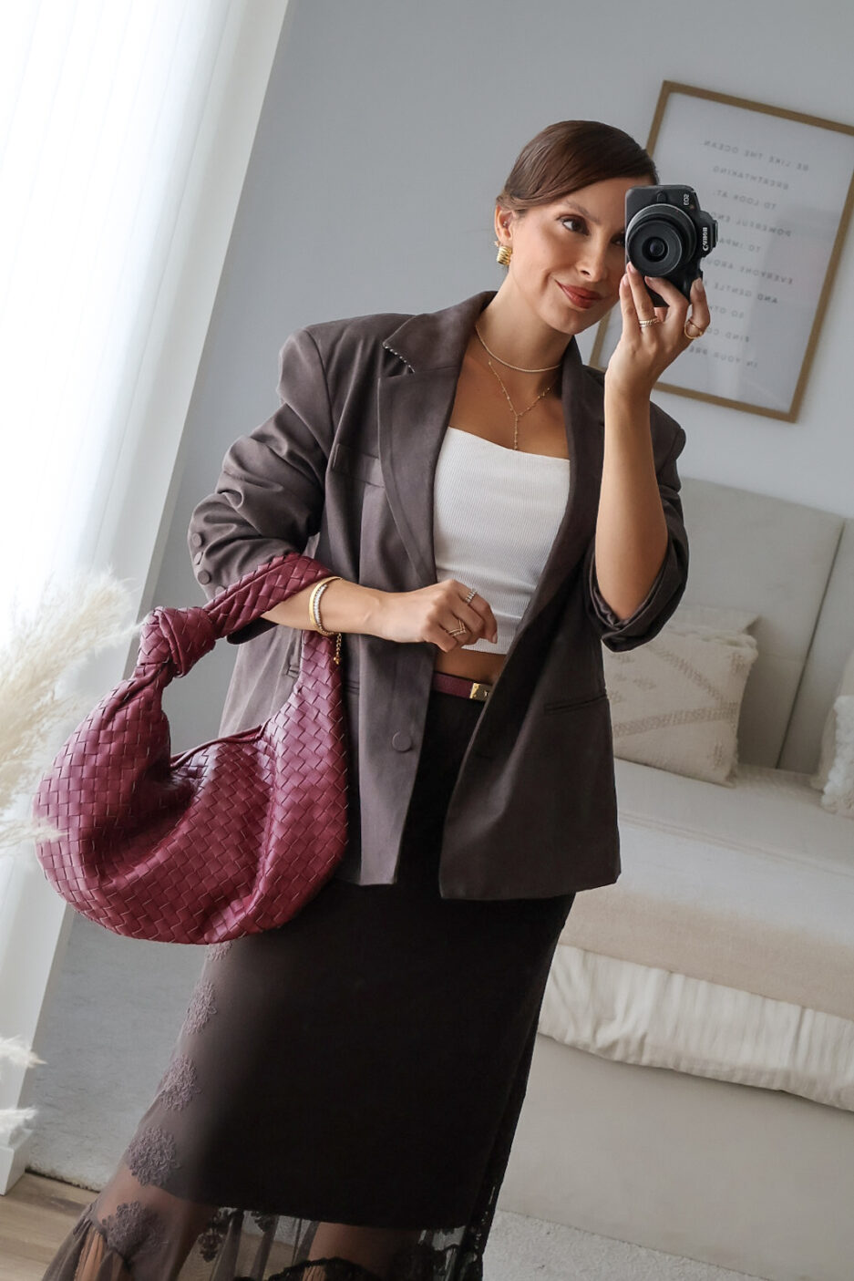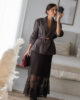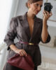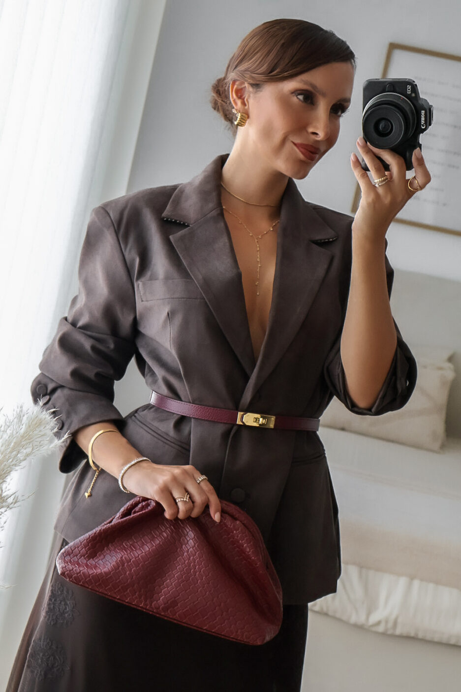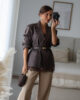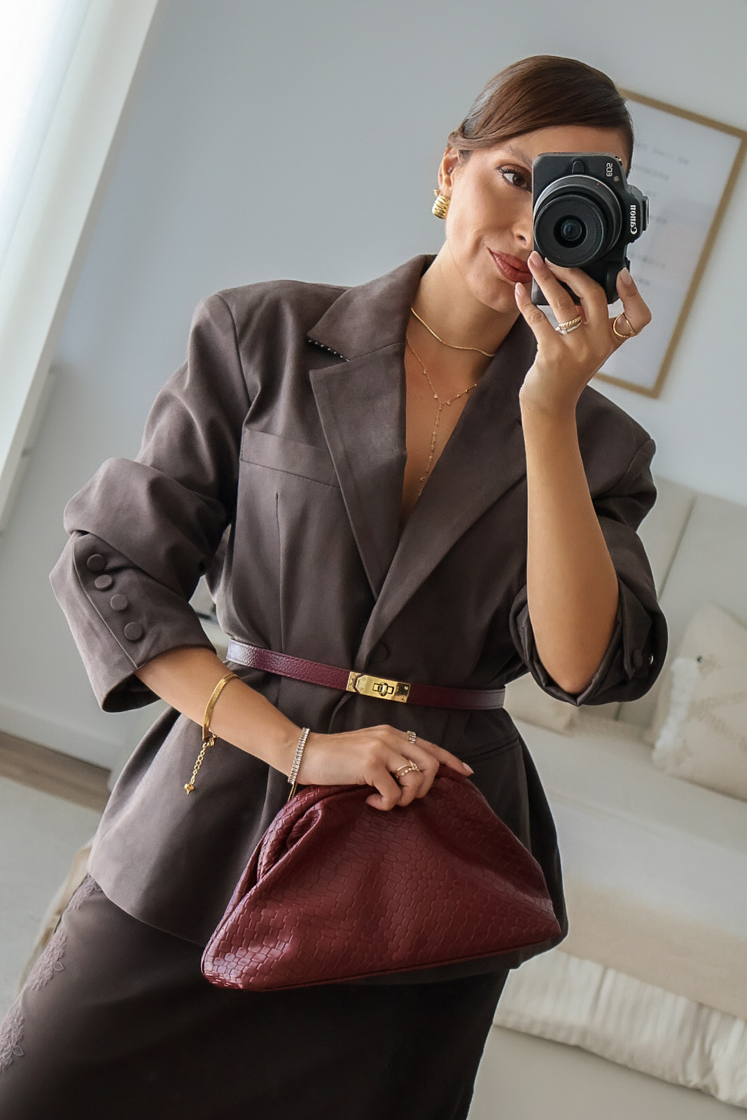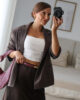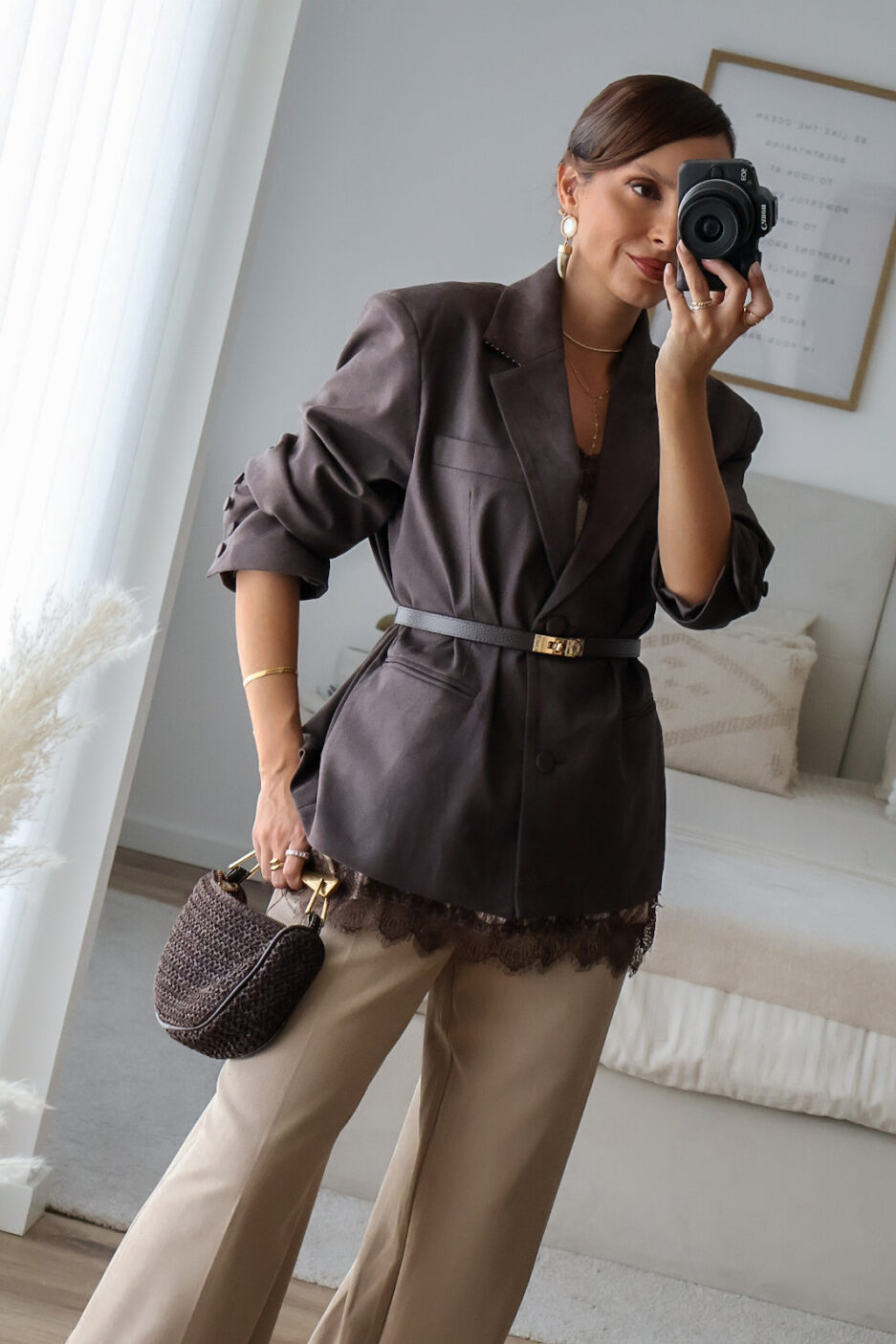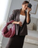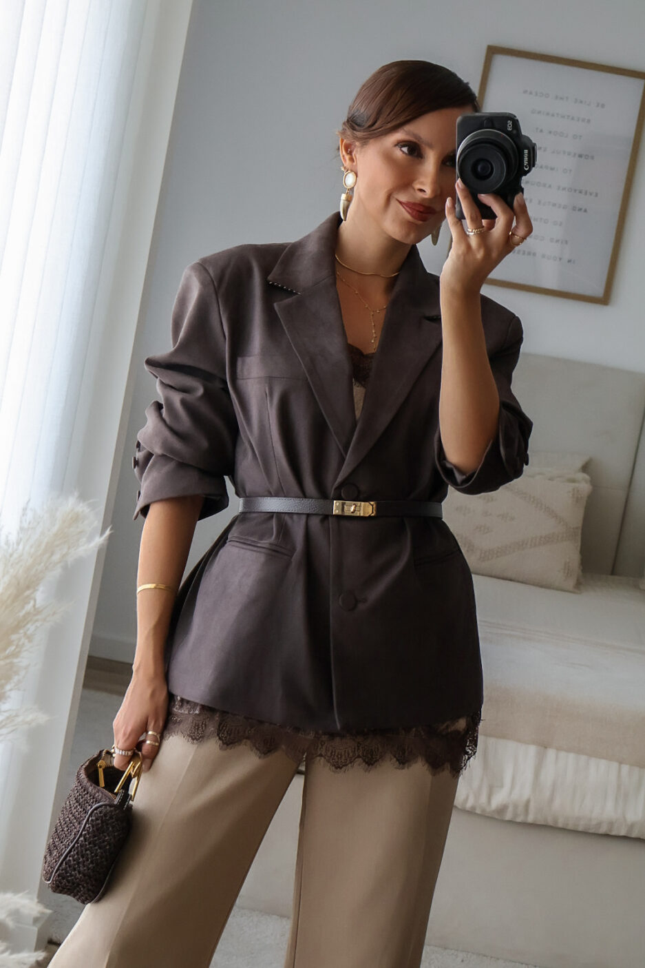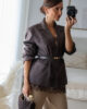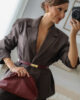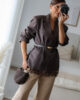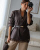 Blazer oversize em camurça de alta qualidade. Com bolsos e todo forrado. Detalhe de botões forrados no mesmo tecido do blazer.