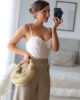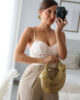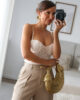 Body em renda com drapeado. Tem forro, copas e alças elásticas e ajustáveis.