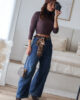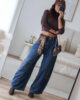 Calças de ganga modelo balloon. São de cinta subida e todas cardadas por dentro. Vestem super bem. O tecido tem ótima qualidade. Garantem um caimento perfeito e fluido. Tem bolsos e presilhas e trazem oferta de cinto em camurça e lenço. Vestem tamanho real.