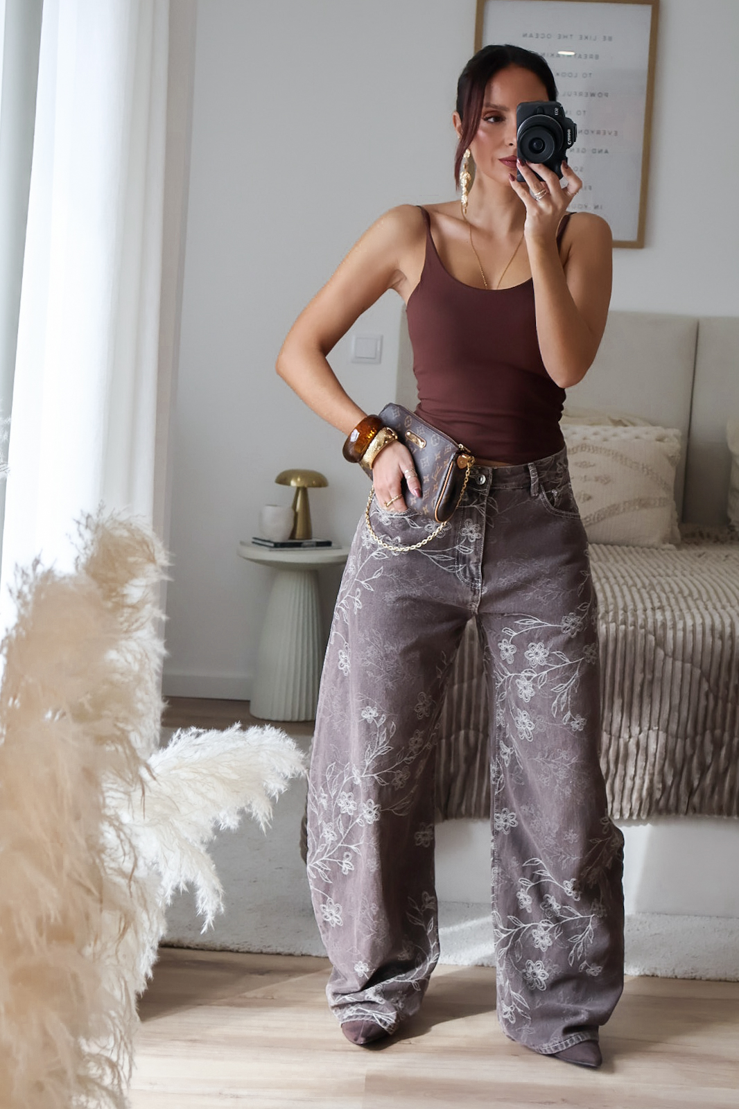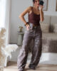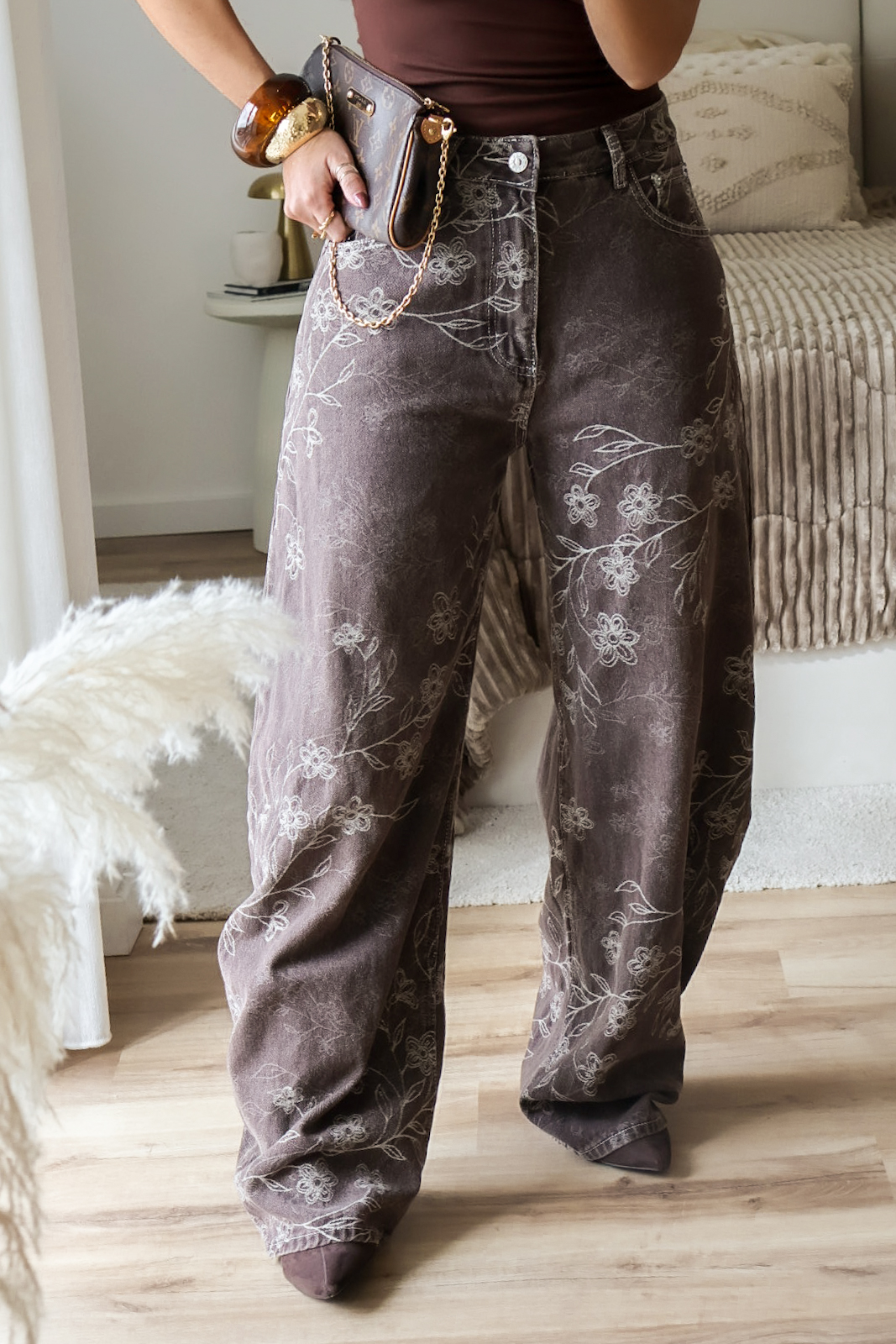 Calças de ganga modelo barrel bordadas. Vestem super bem e a ganga é de excelente qualidade. Garantem um caimento estruturado e elegante, valorizando a silhueta. Não tem elasticidade e vestem normal. Tem bolsos e presilhas.