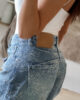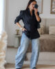 Calças de ganga modelo barrel bordadas. Vestem super bem e a ganga é de excelente qualidade. Garantem um caimento estruturado e elegante, valorizando a silhueta. Não tem elasticidade e vestem normal. Tem bolsos e presilhas.
