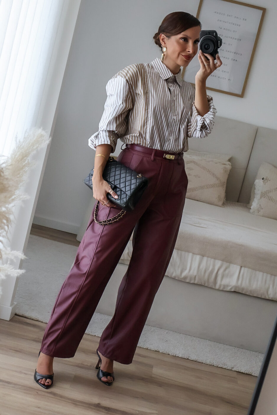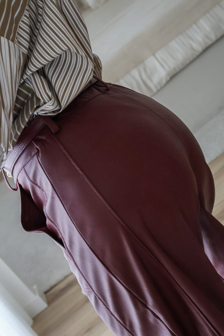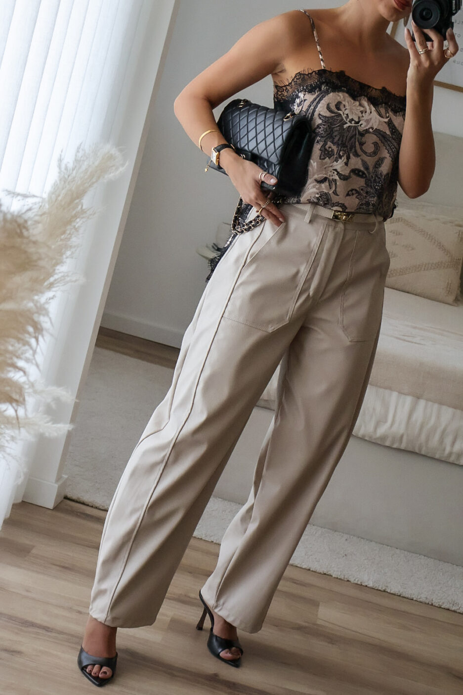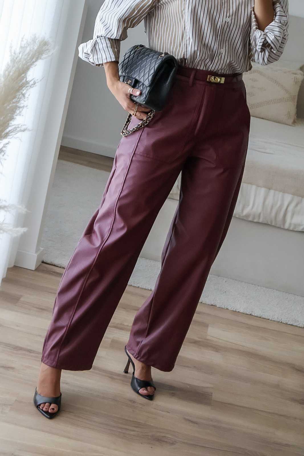 Calças barrel feitas em ecopele, que conferem um visual moderno e sofisticado. Vestem super bem. Vestem tamanho real. As calças são de cinta subida.