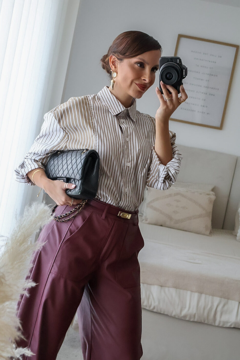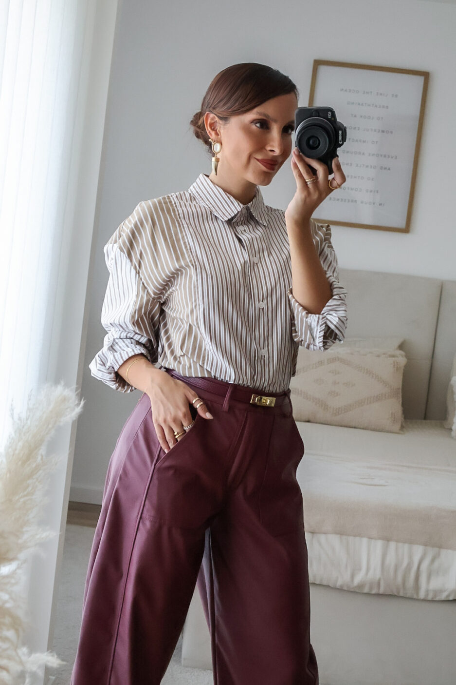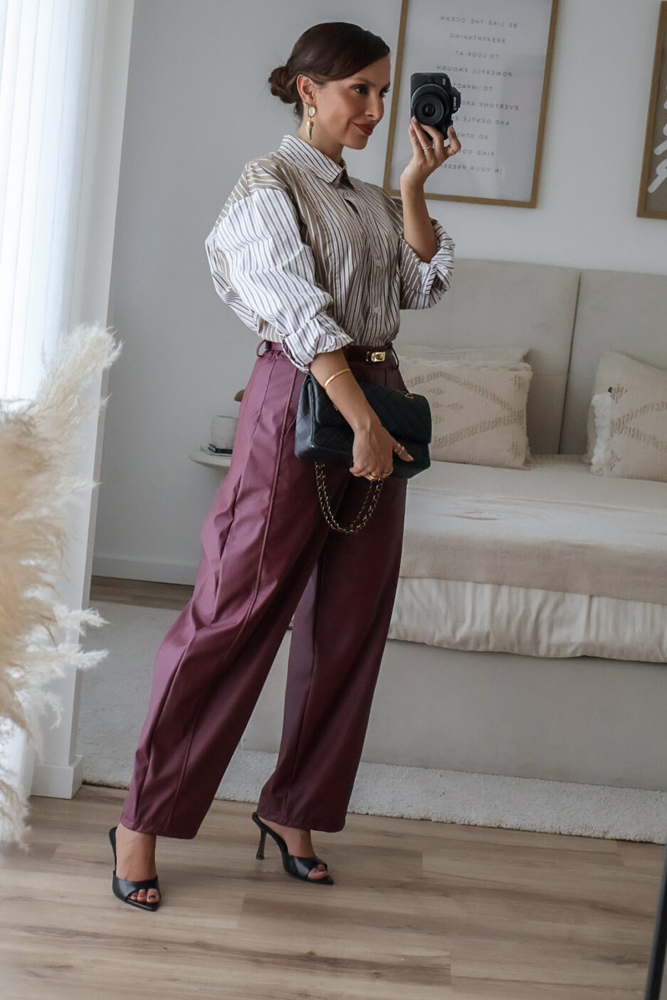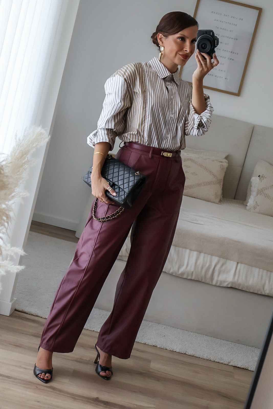 Calças barrel feitas em ecopele, que conferem um visual moderno e sofisticado. Vestem super bem. Vestem tamanho real. As calças são de cinta subida.