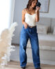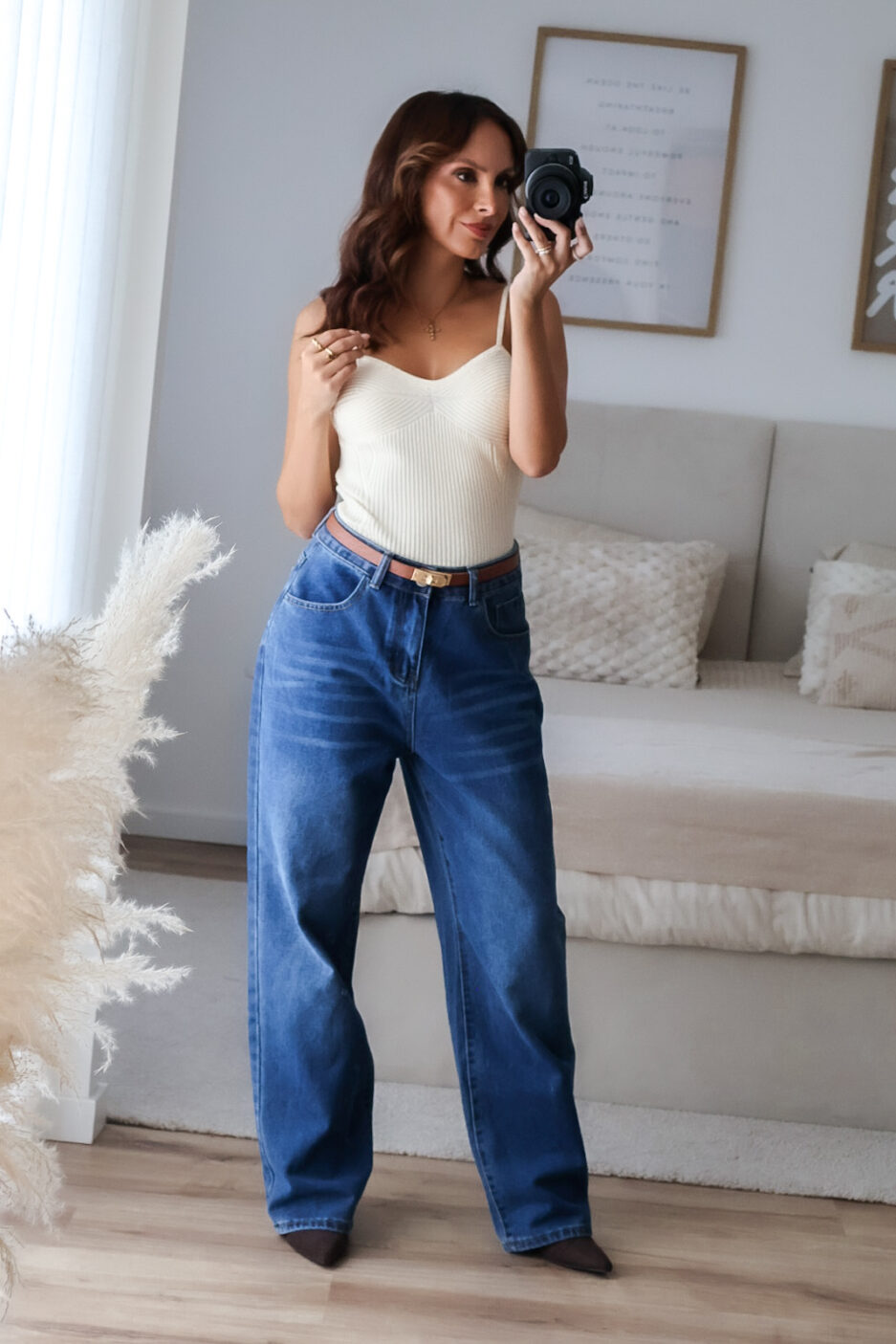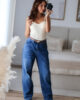 Calças de ganga modelo wide leg. Vestem super bem e a ganga é de excelente qualidade. Garantem um caimento elegante e fluido. Não tem elasticidade e se gostarem do modelo mais solto e descido, é preferível escolherem o tamanho acima. Tem bolsos e presilhas.