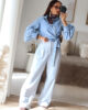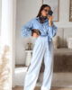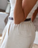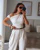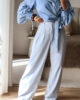 Calças de alfaiataria corte wide leg com pinças, efeito linho. Vestem super bem. Têm bolsos e elástico na cinta atrás. Na composição têm algodão e linho.