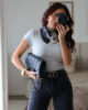 Como comparação a modelo mede 1,64m, veste XS/S e está com o 34/XS vestido.