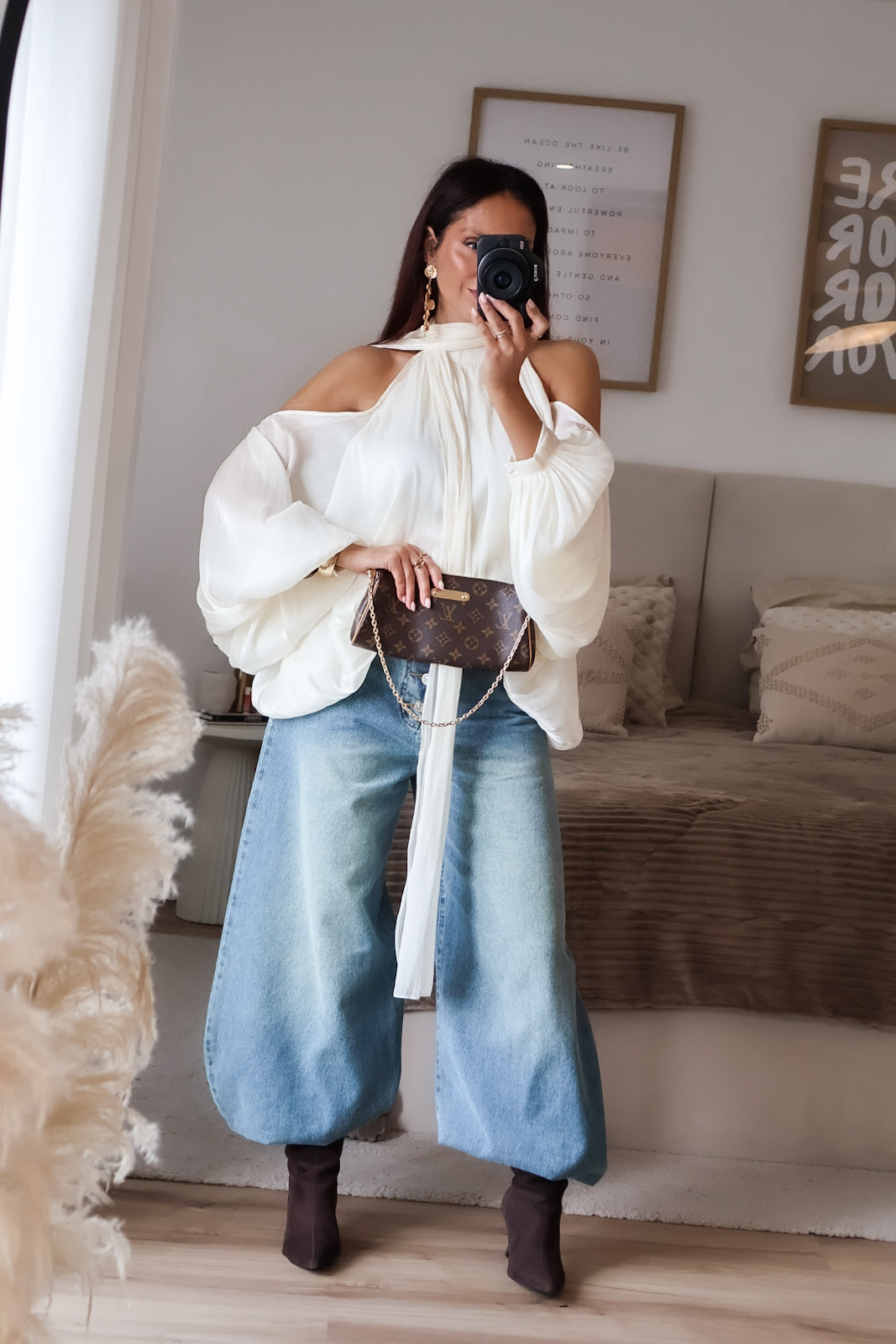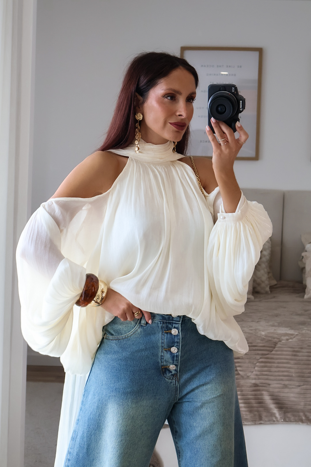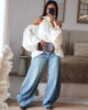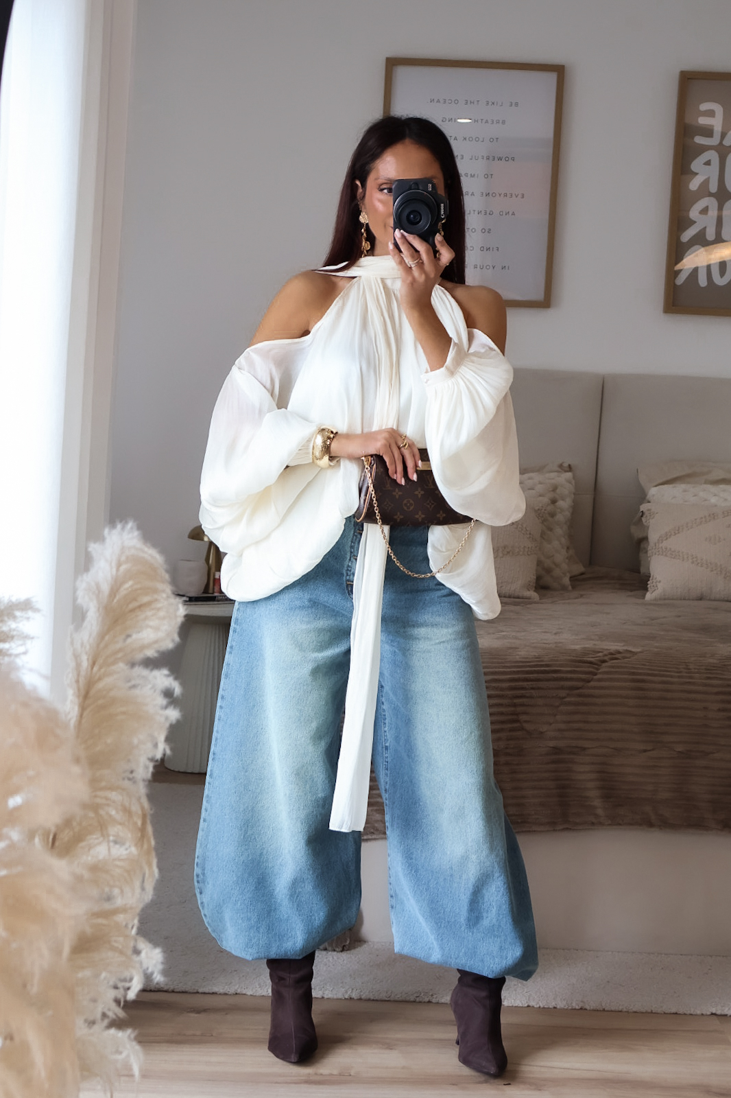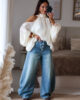 Calças de ganga modelo balloon. Vestem super bem e a ganga é de excelente qualidade. Garantem um caimento estruturado e elegante, valorizando a silhueta. Não tem elasticidade e vestem normal. Tem bolsos e presilhas.