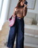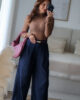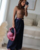 Calças em fazenda na cor azul. São de cinta subida e trazem 1 cinto preto de oferta. Vestem super bem e o tecido tem ótima qualidade. Garantem um caimento elegante e fluido. Tem bolsos e presilhas.