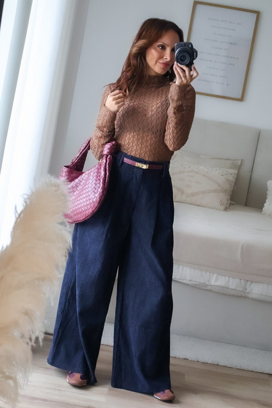 Calças em fazenda na cor azul. São de cinta subida e trazem 1 cinto preto de oferta. Vestem super bem e o tecido tem ótima qualidade. Garantem um caimento elegante e fluido. Tem bolsos e presilhas.