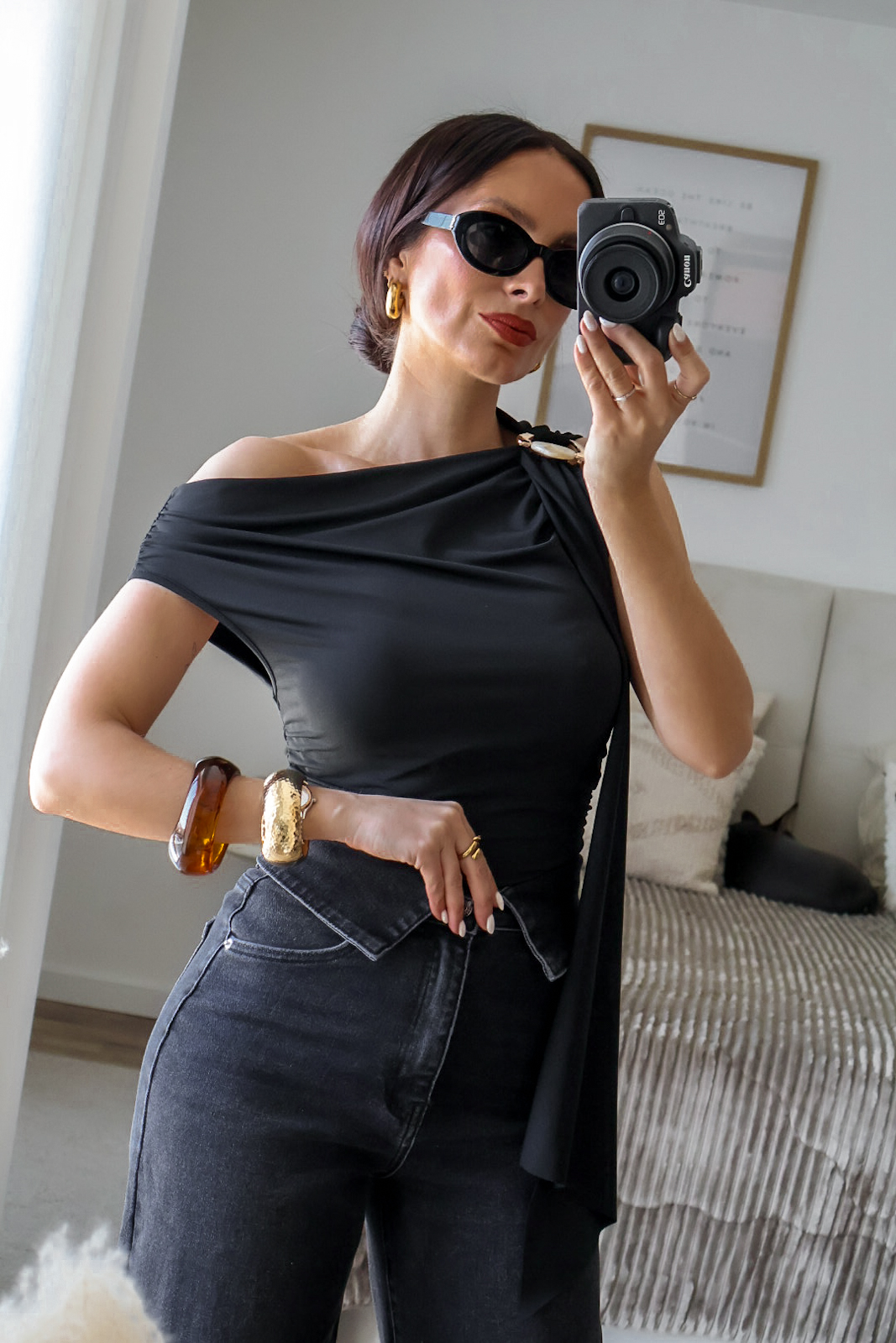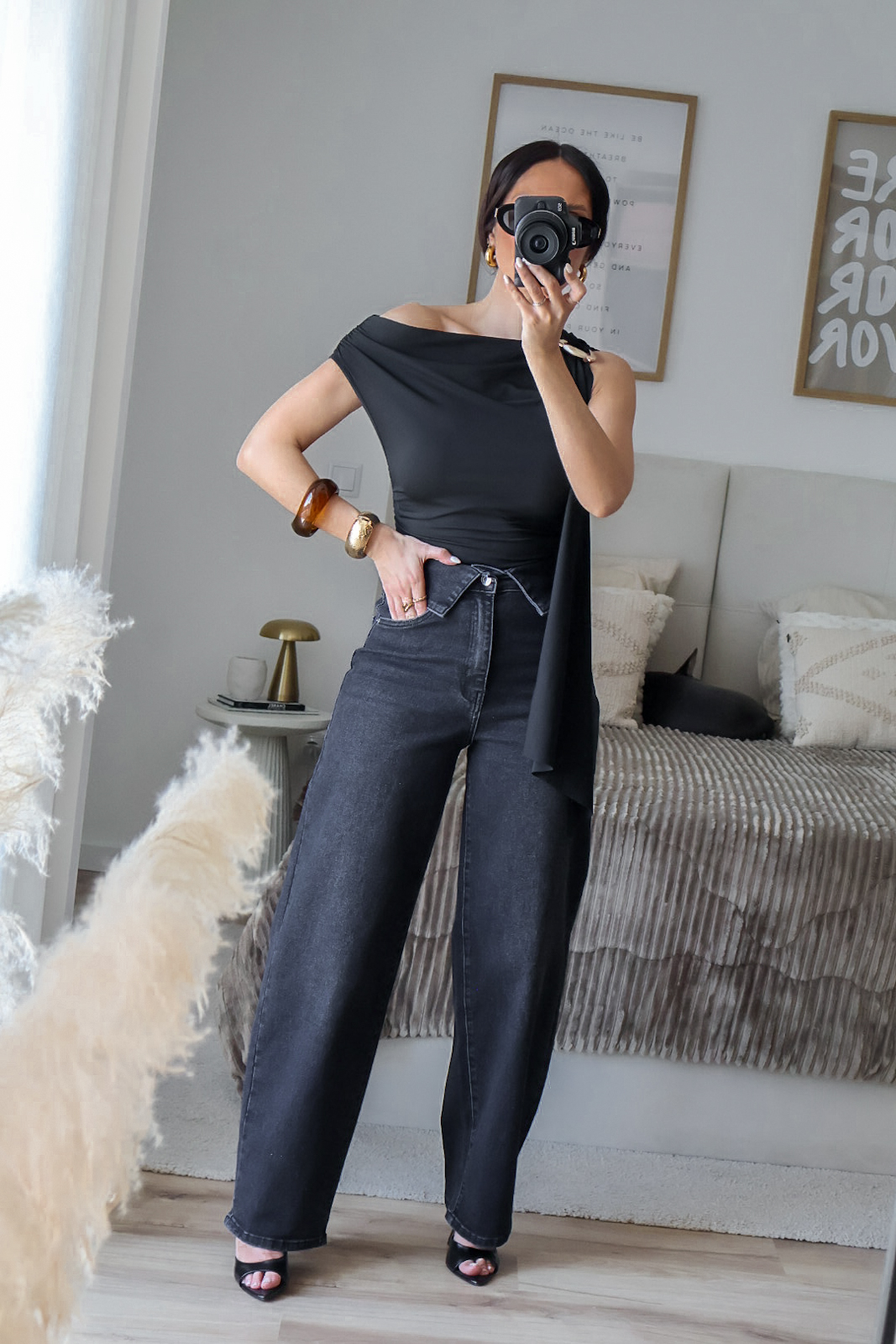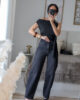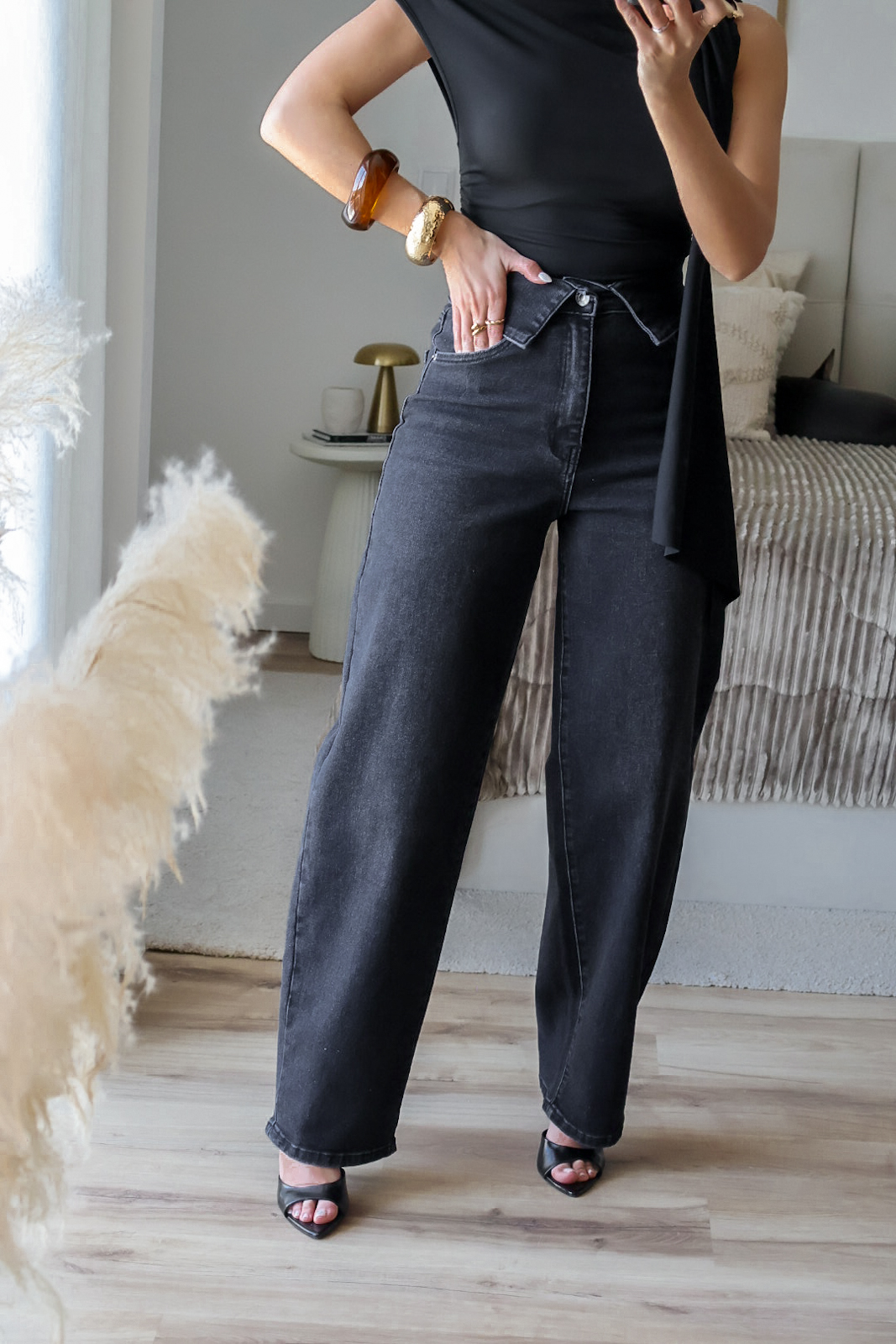 Calças de ganga modelo barrel com o efeito cós dobrado. Vestem super bem e a ganga é de excelente qualidade. Garantem um caimento estruturado e elegante, valorizando a silhueta. Tem elasticidade e vestem normal. Tem bolsos e presilhas.