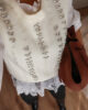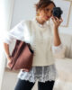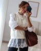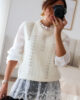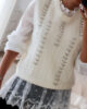 Camisa com aplicação de renda em baixo. Colete de malha com elasticidade e aplicações.