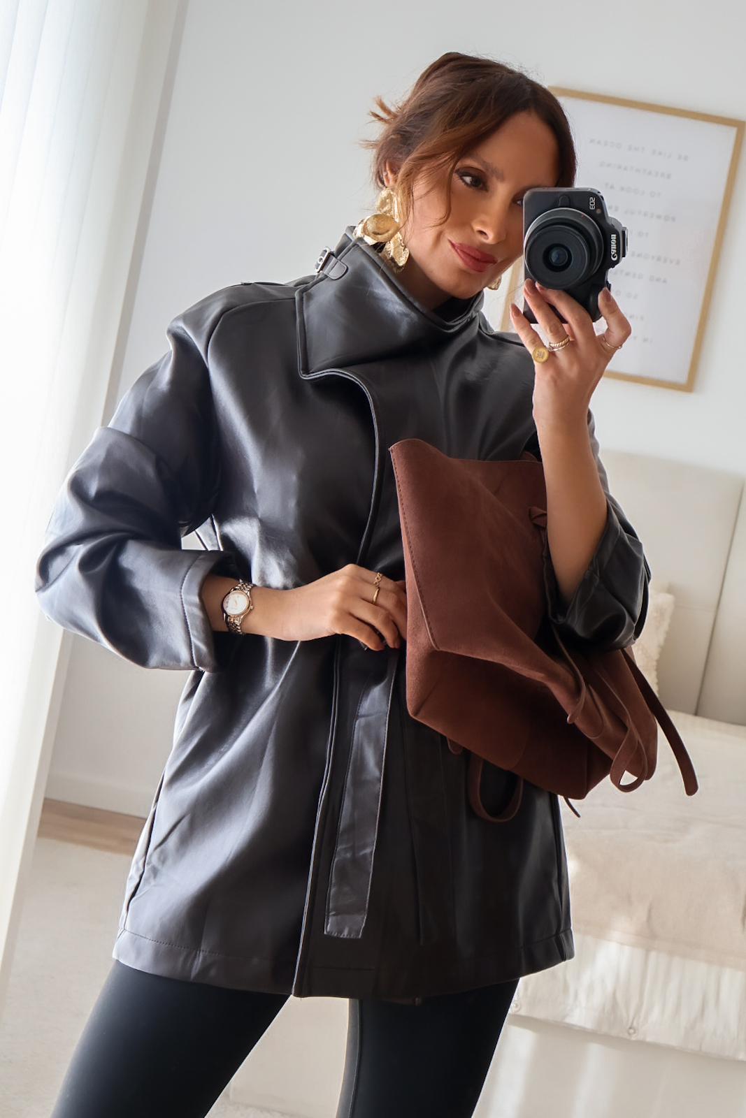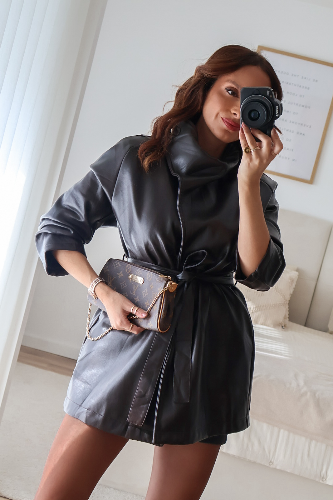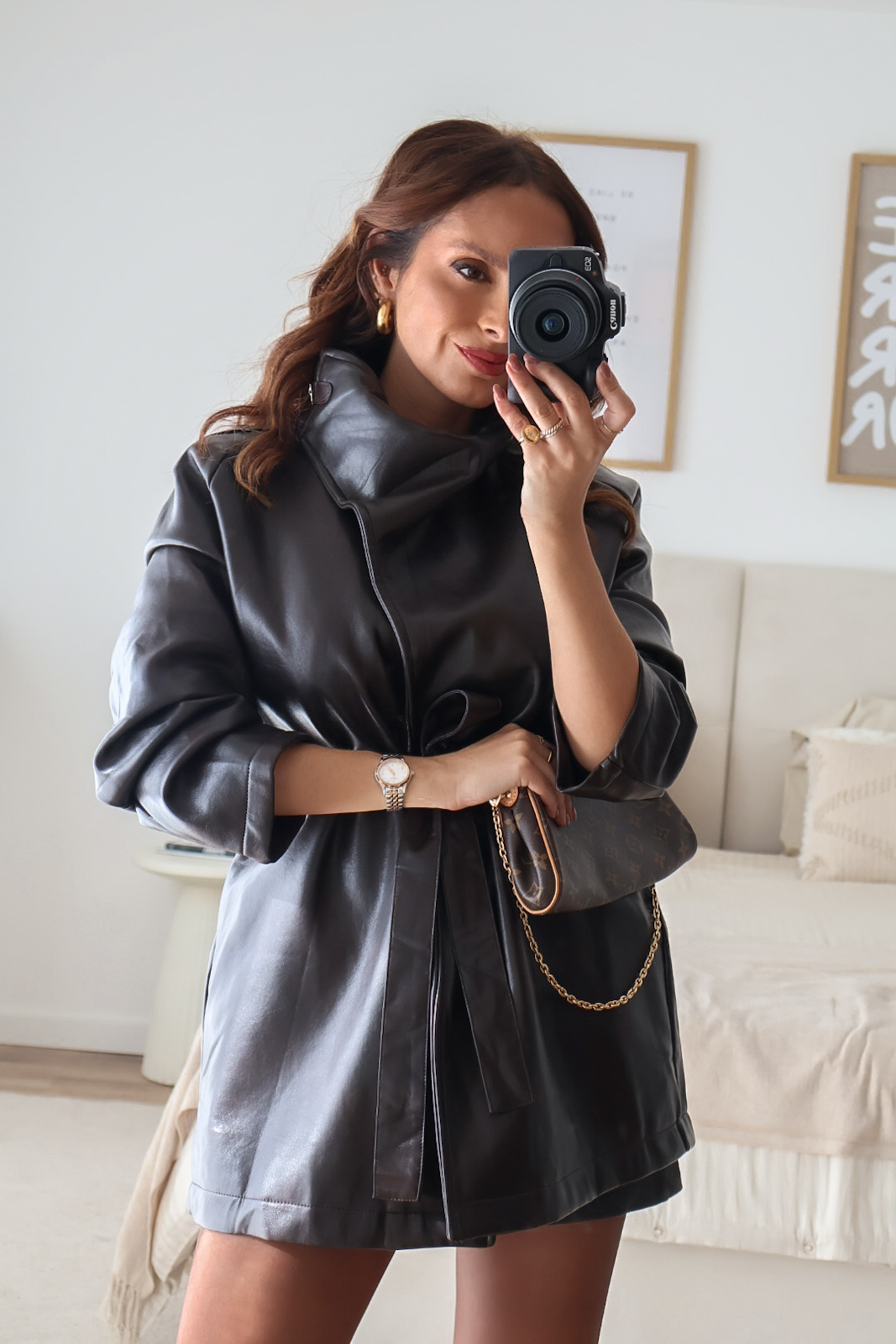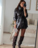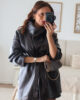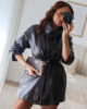 Casaco em ecopele com cinto.