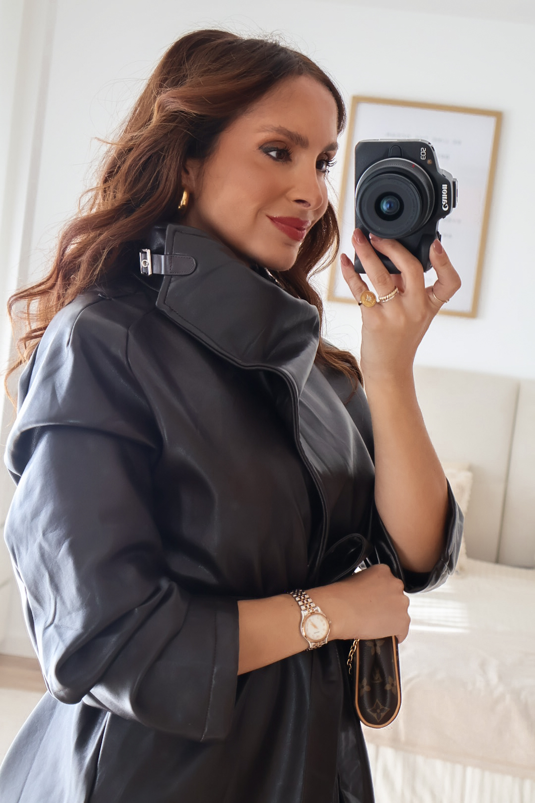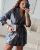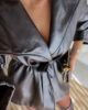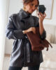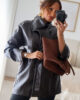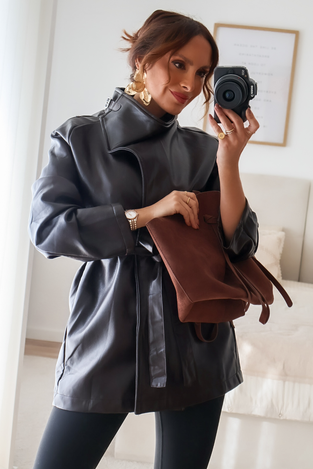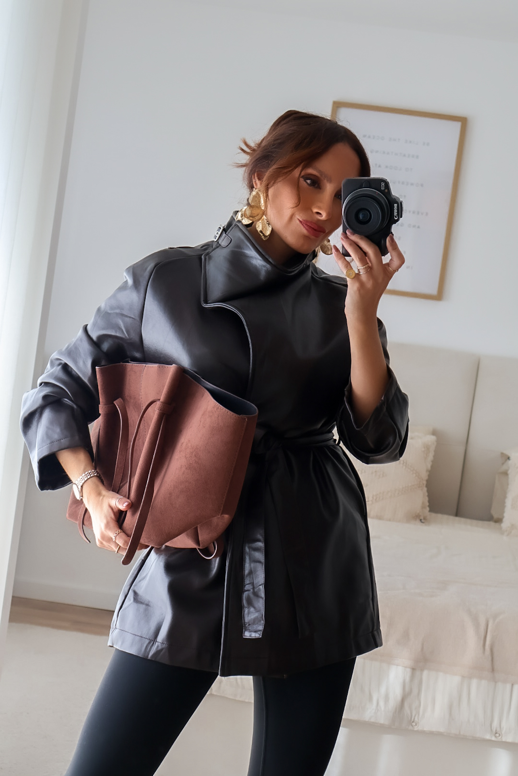 Casaco em ecopele com cinto.