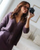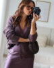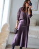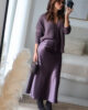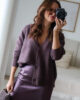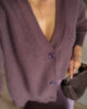 Casaco em malha canelada castanha. Botões à cor. Com elasticidade.