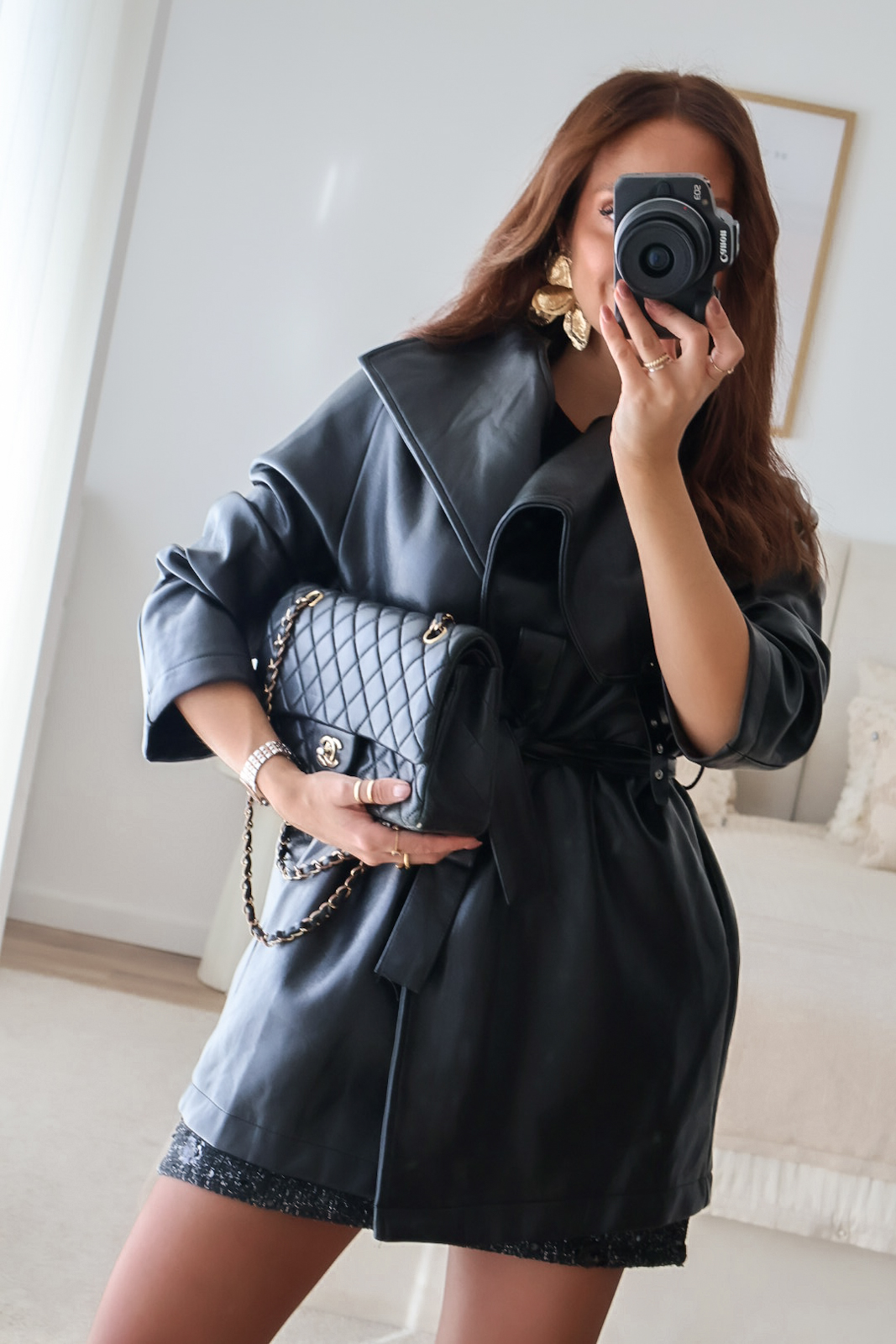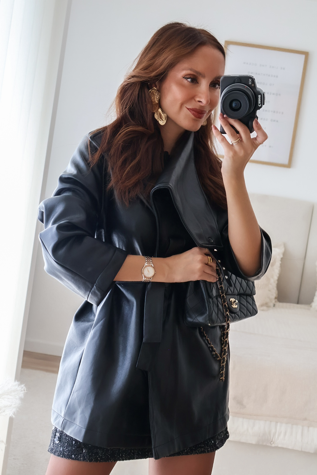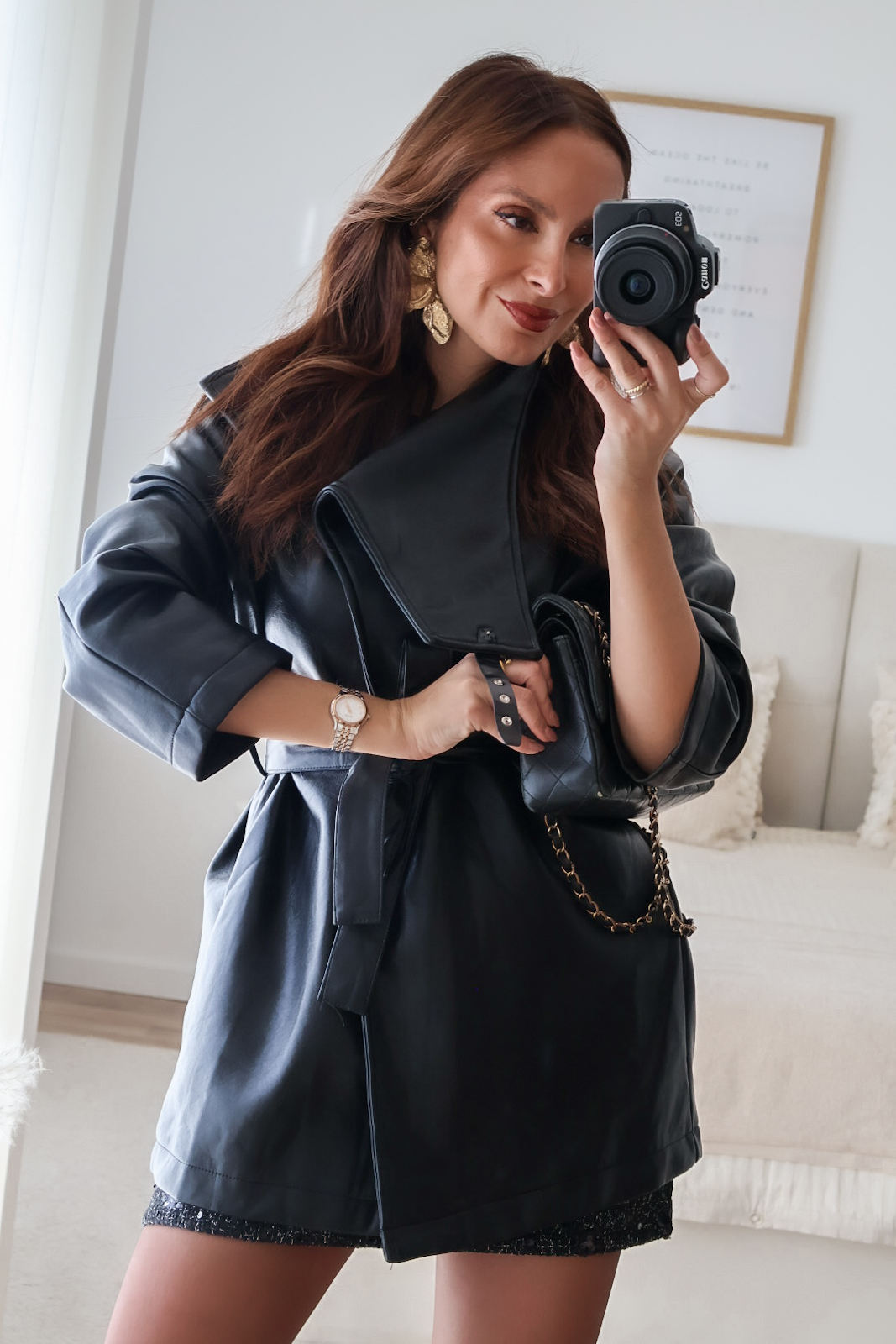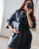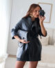 Casaco em ecopele com cinto.