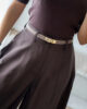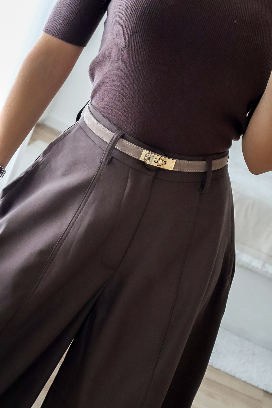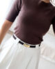 Inspirado no estilo clássico do luxo francês, este cinto 100% pele genuína, italiana destaca-se pela fivela icónica e acabamento premium. Ajustável a todos os tamanhos. Fivela dourada.