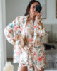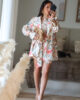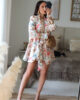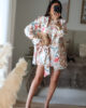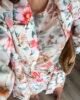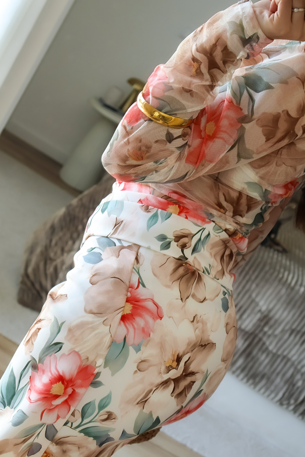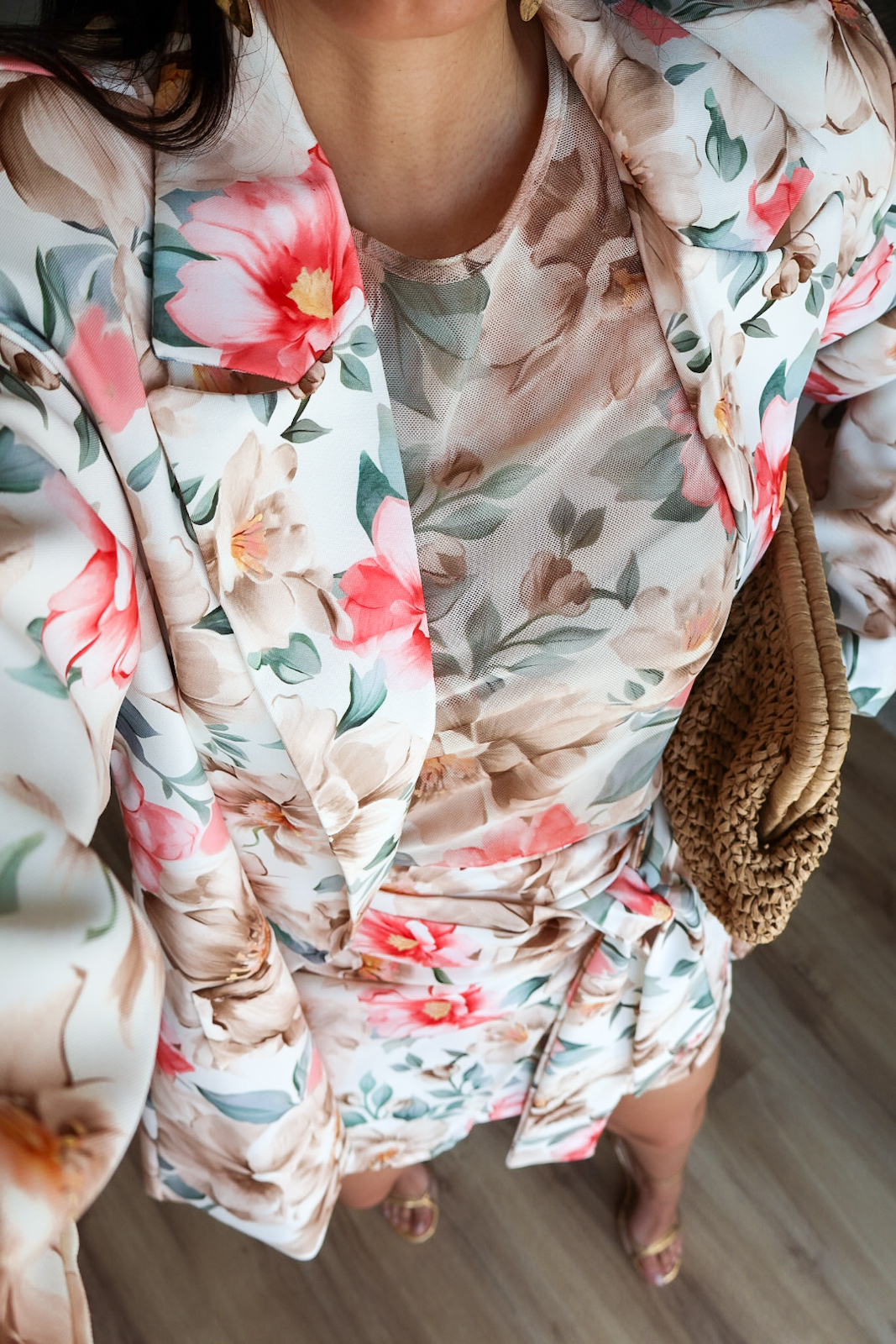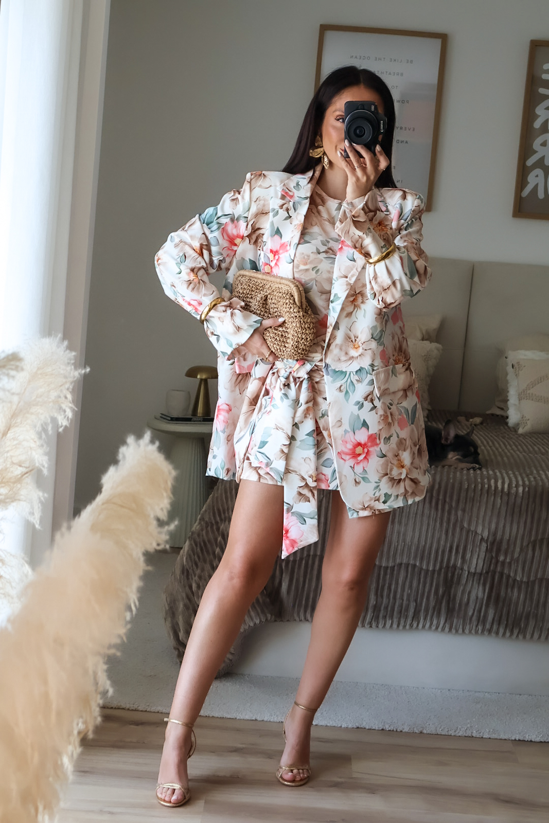 Conjunto composto por blazer e saia. Blazer forrado. Estampado floral.