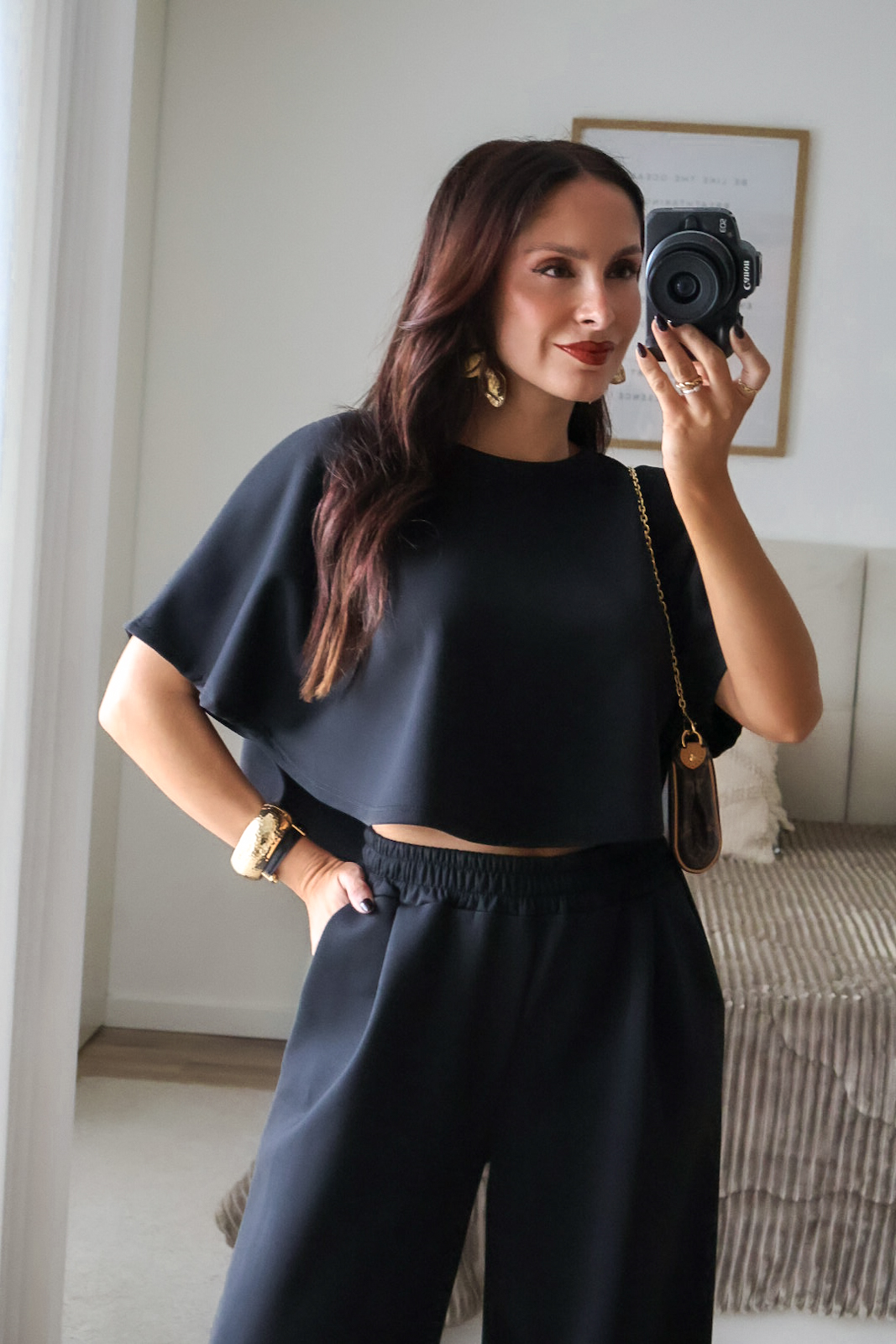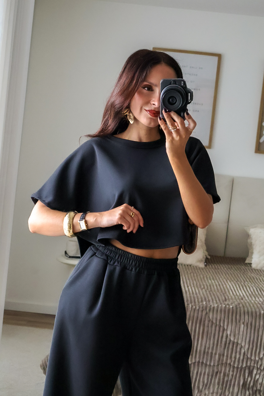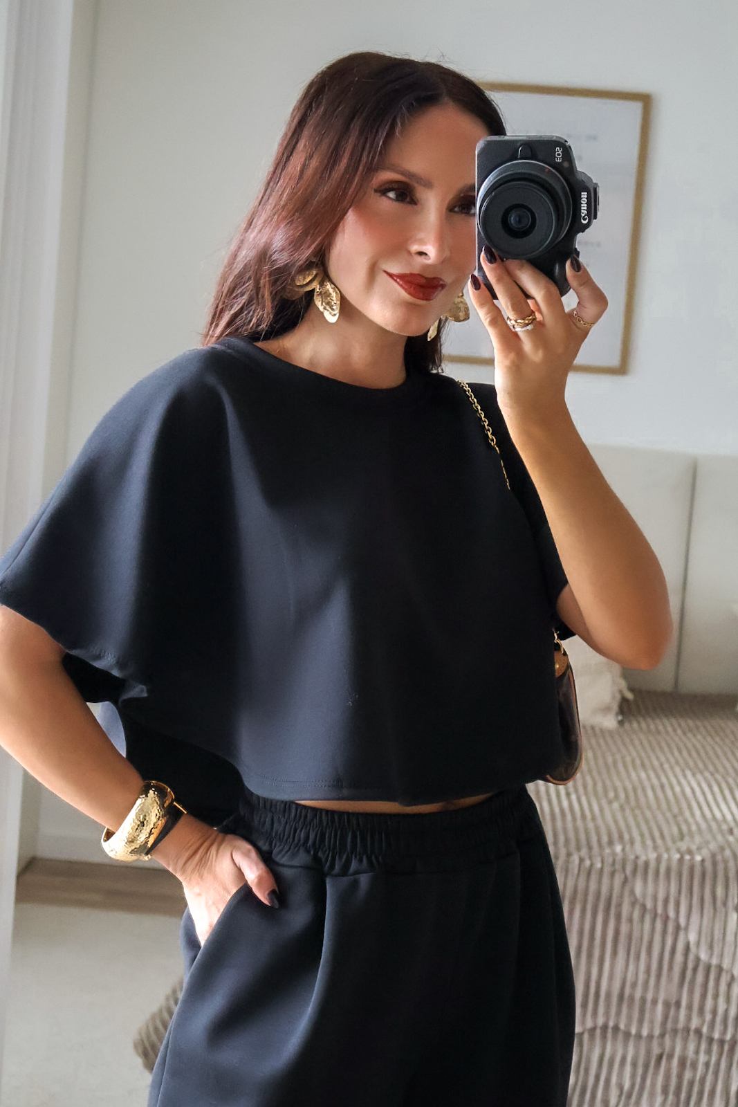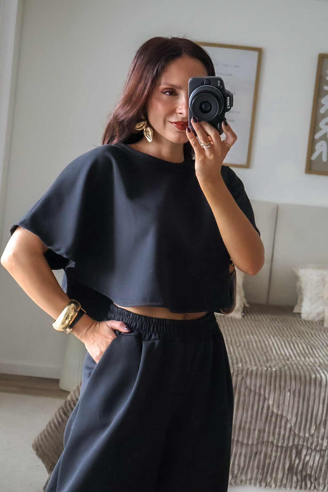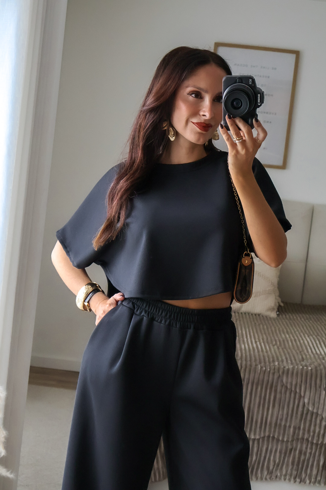 Como comparação, a modelo mede 1.64m, está com uns saltos de 7cm e veste XS/S.