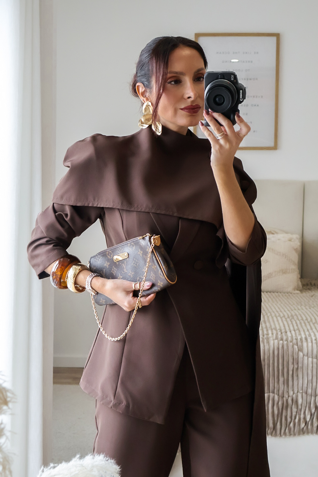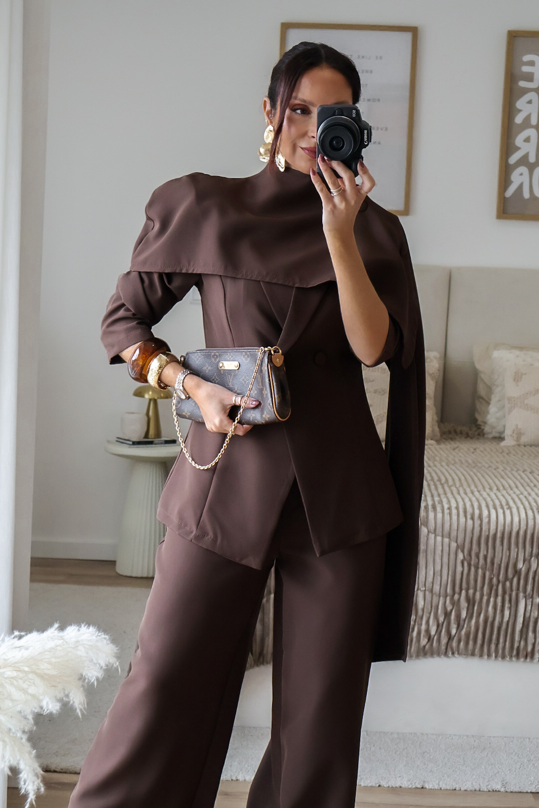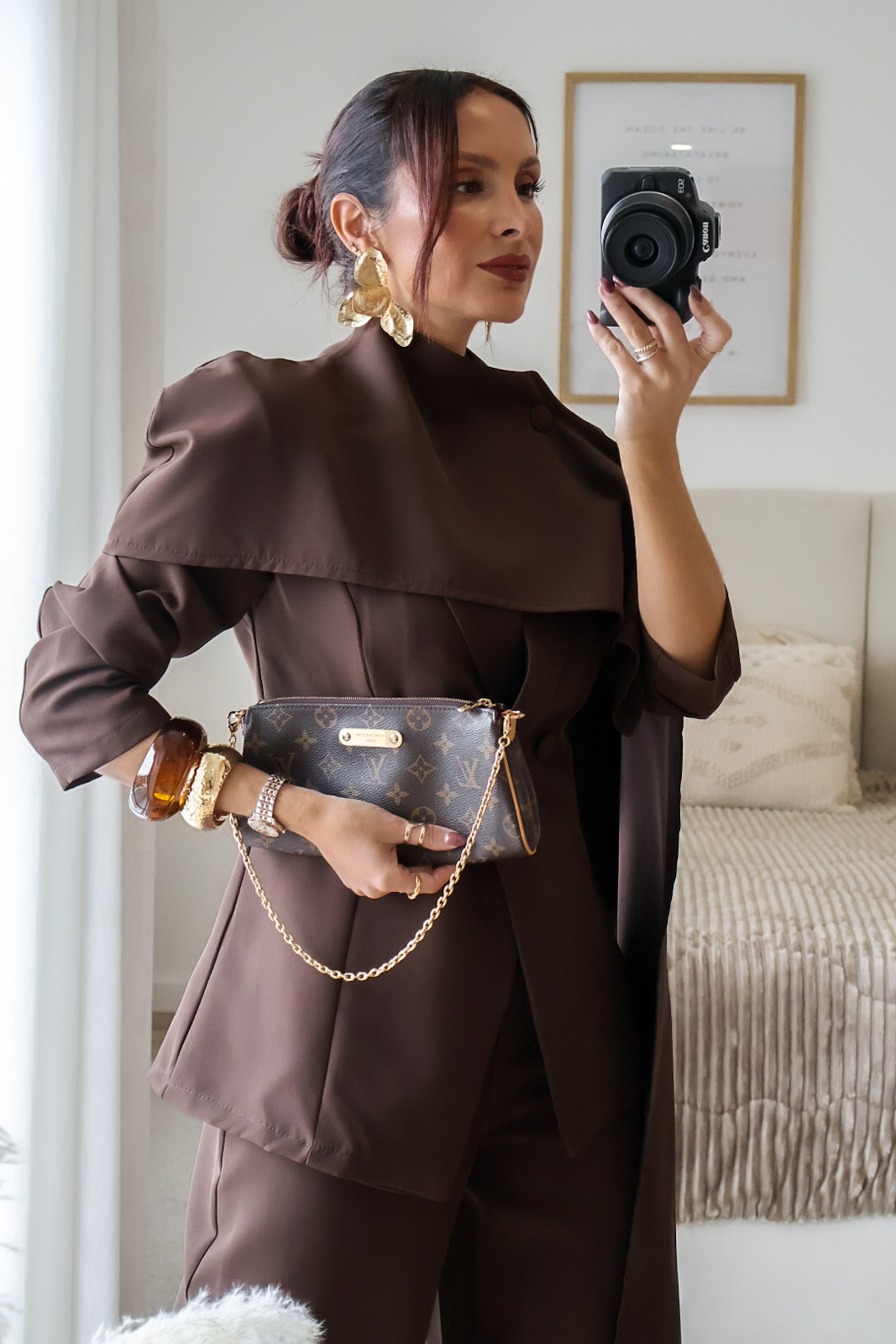 Fato clássico composto por 3 peças. Um conjunto moderno e elegante, ideal para o dia a dia ou ocasiões especiais. Botões forrados com I mesmo tecido do fato. Capa removível.