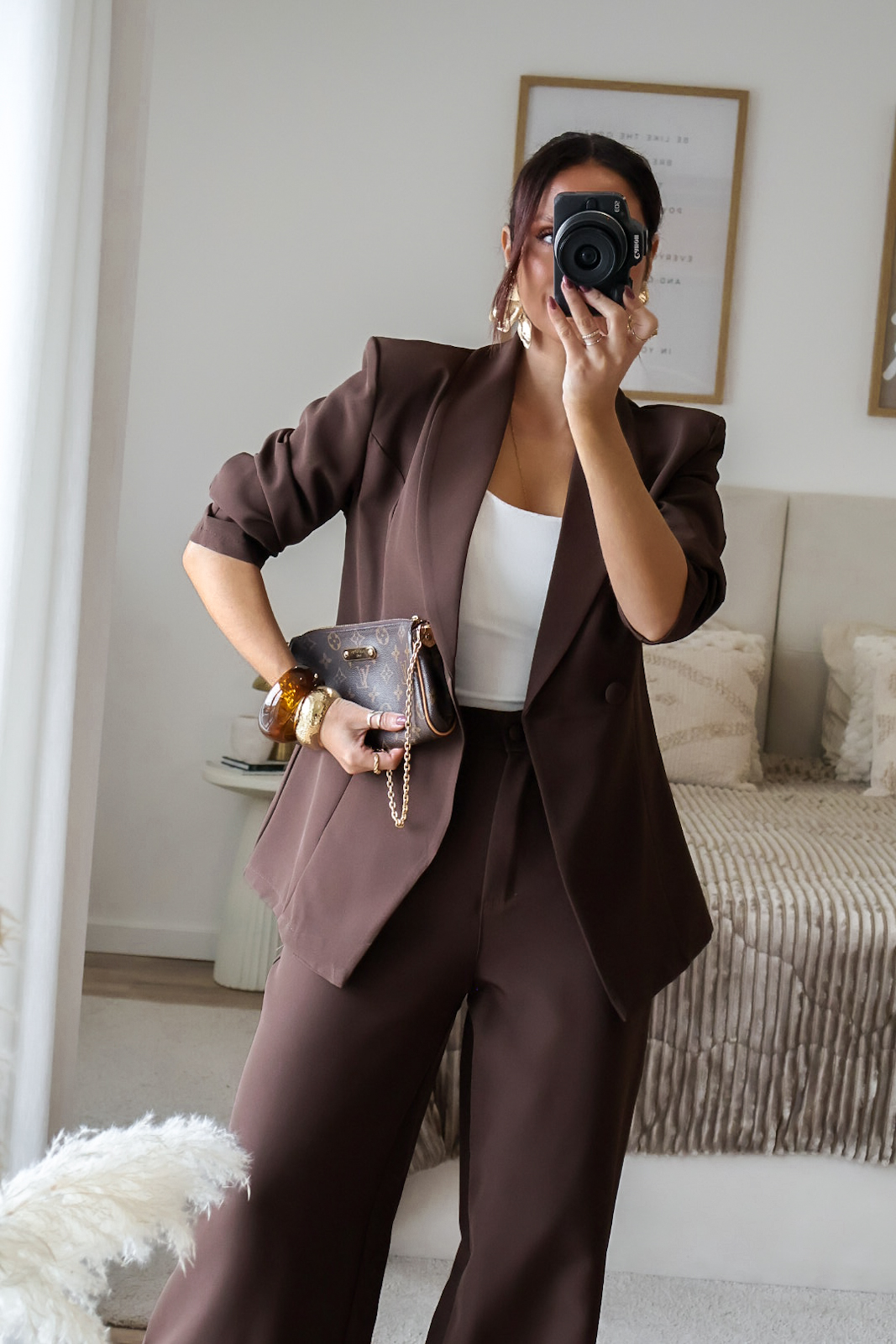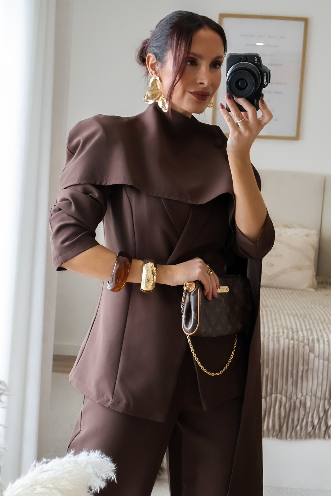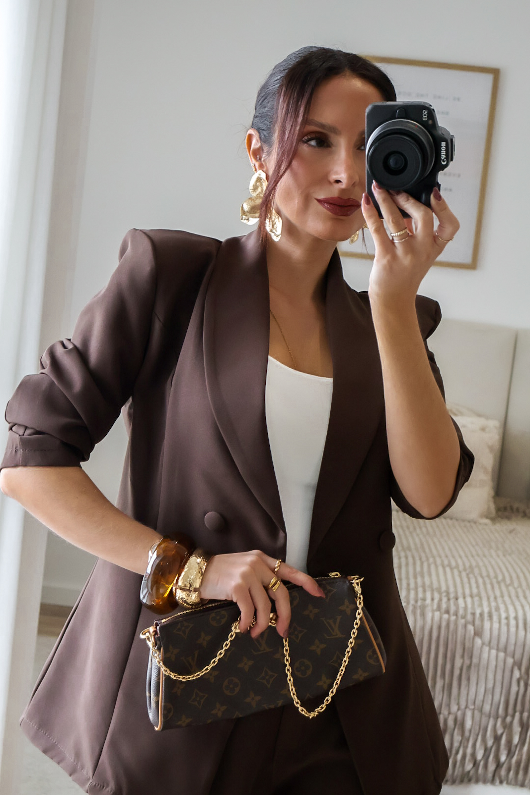 Fato clássico composto por 3 peças. Um conjunto moderno e elegante, ideal para o dia a dia ou ocasiões especiais. Botões forrados com I mesmo tecido do fato. Capa removível.