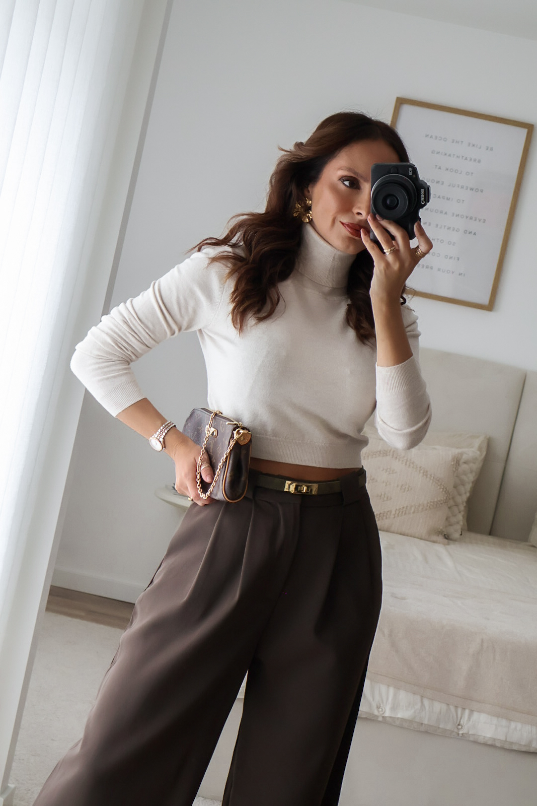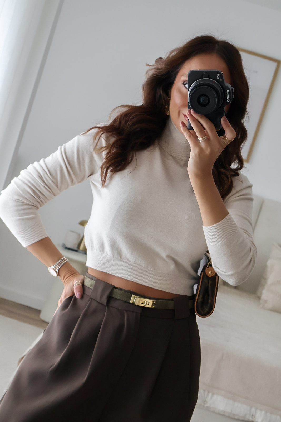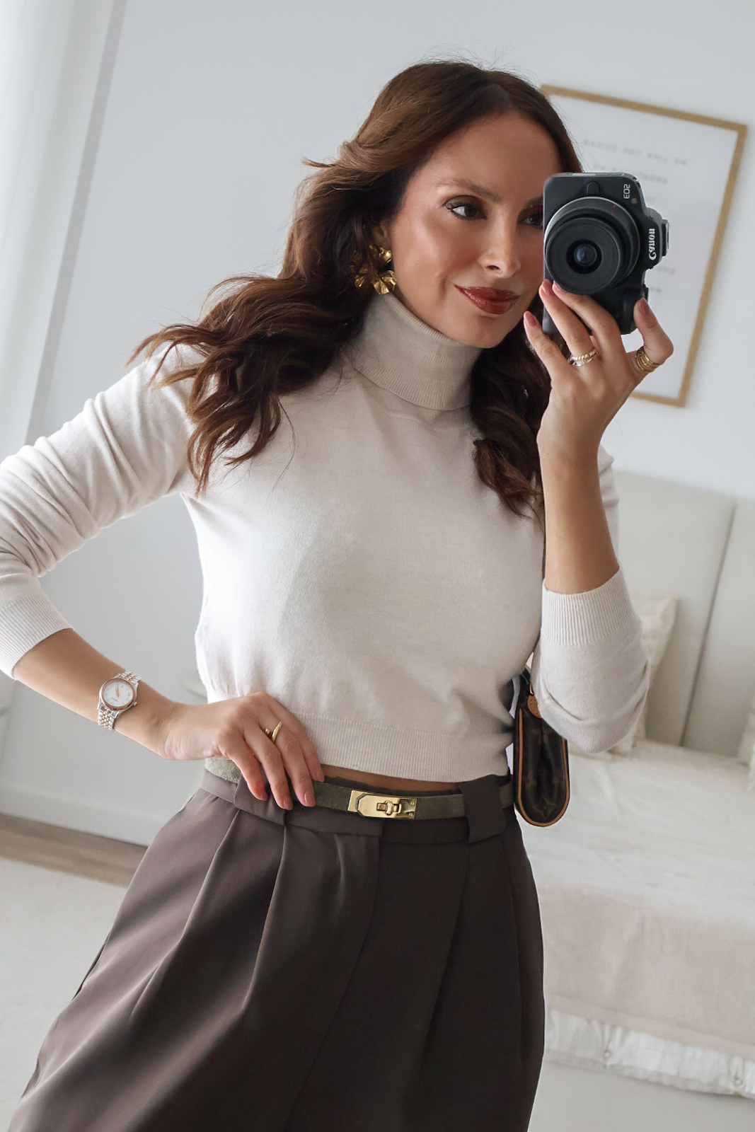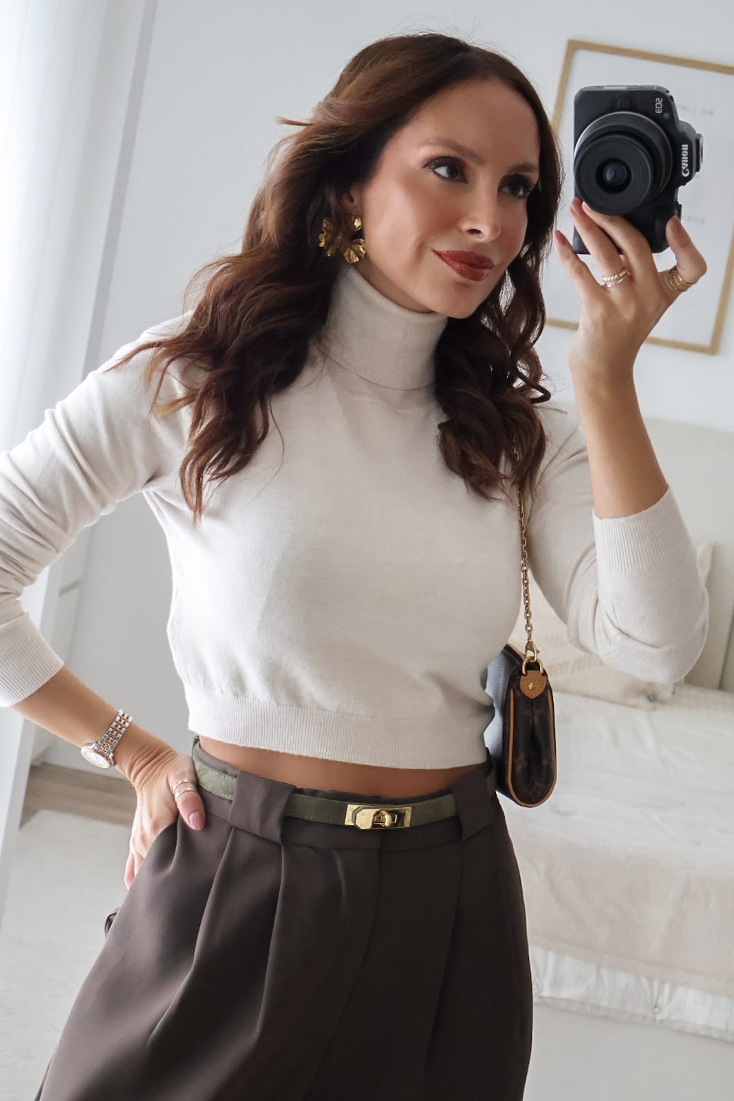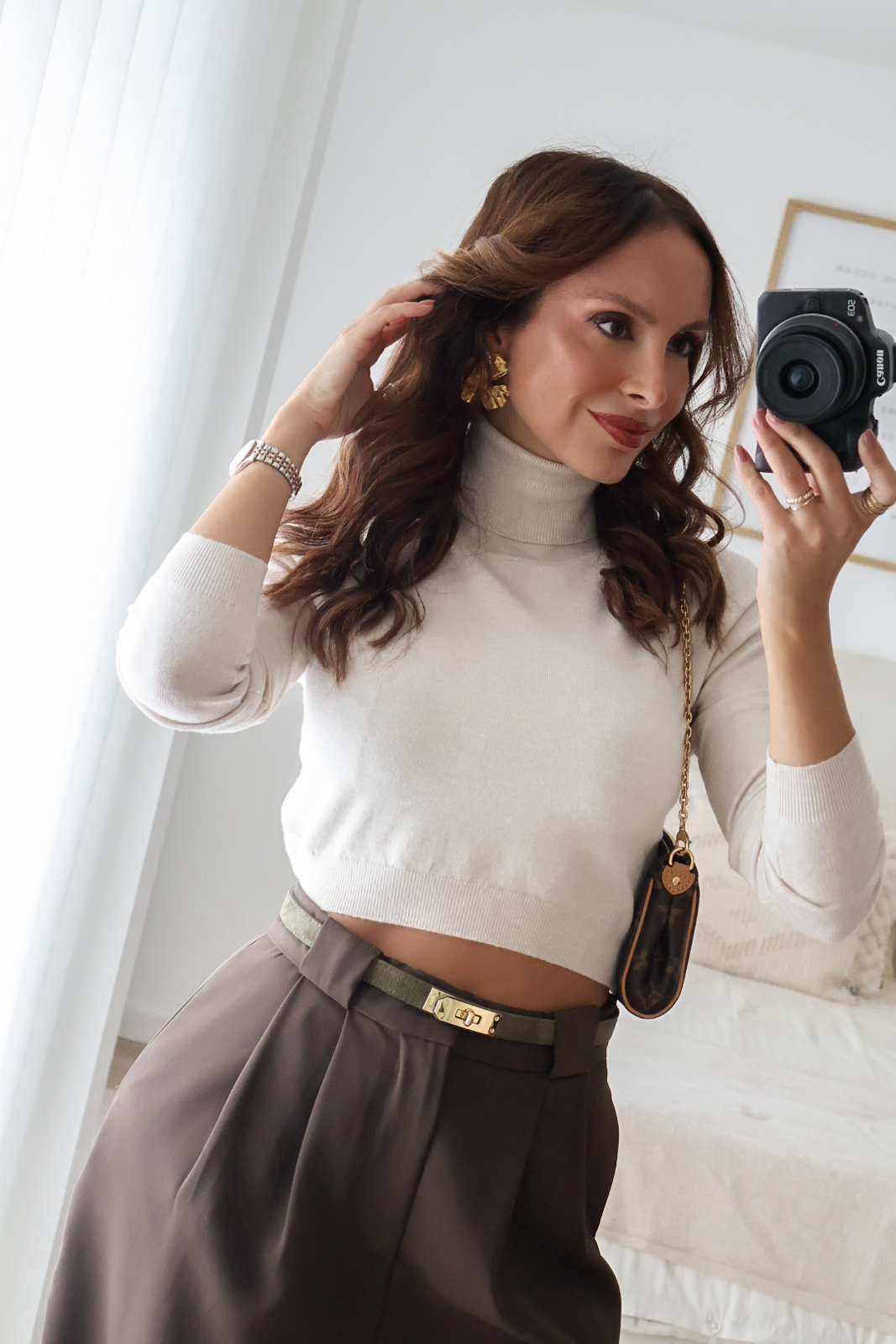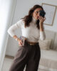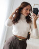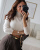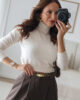 Camisola malha com gola alta. Modelo crop. Tem elasticidade.