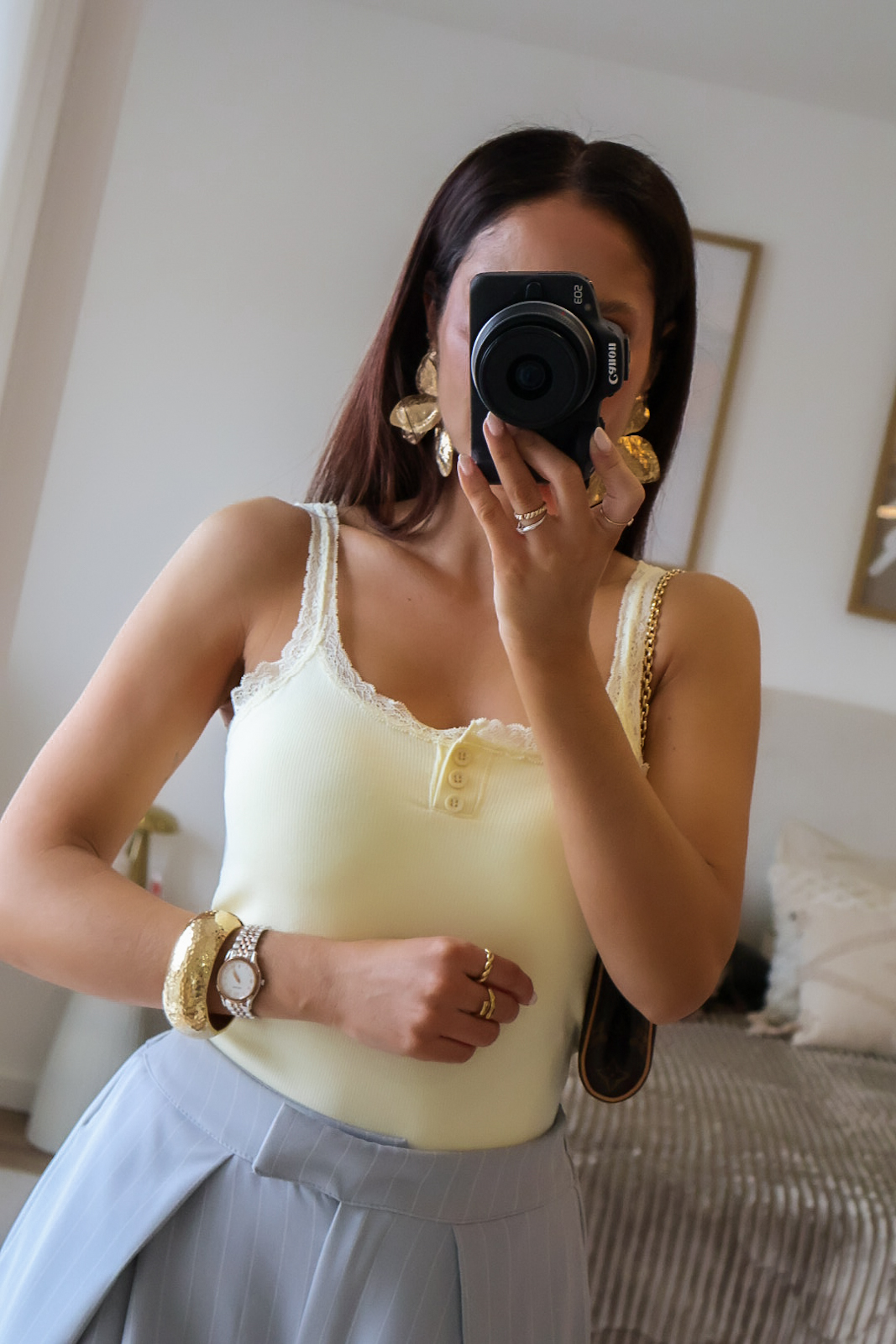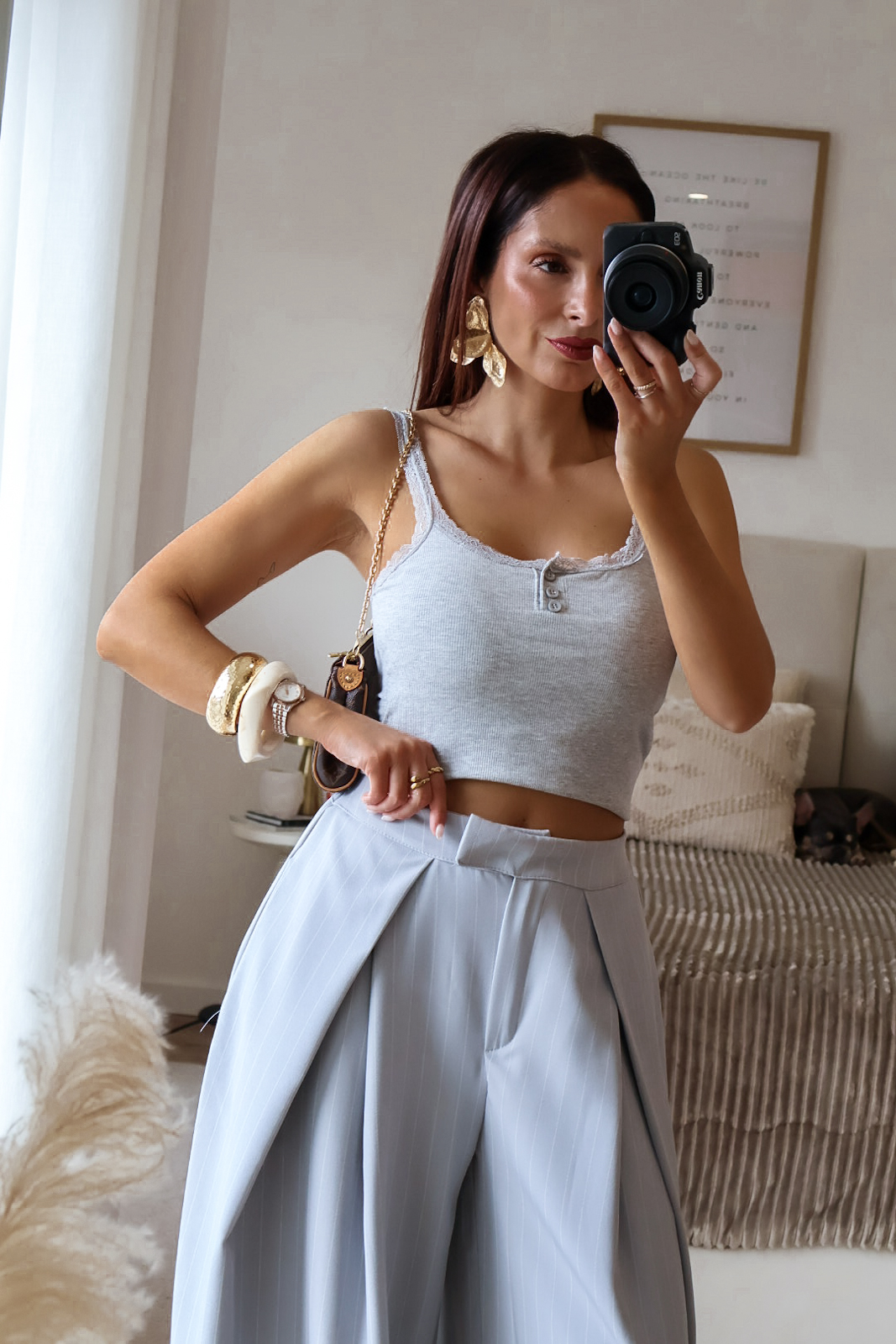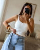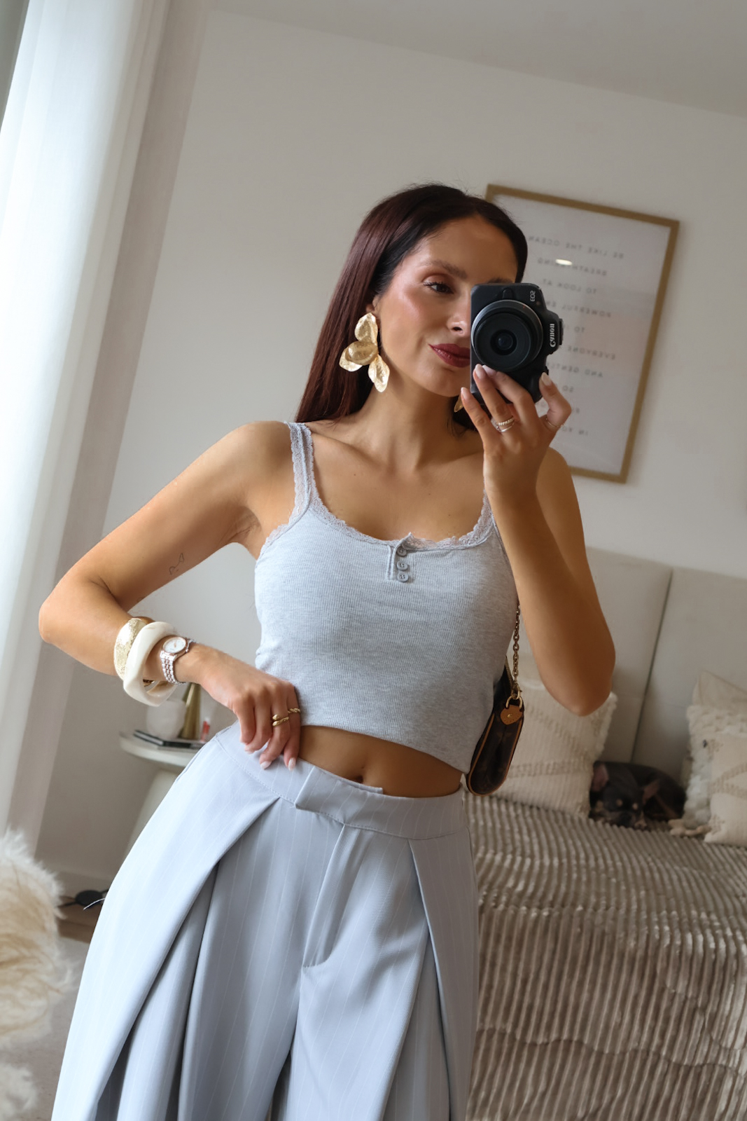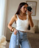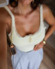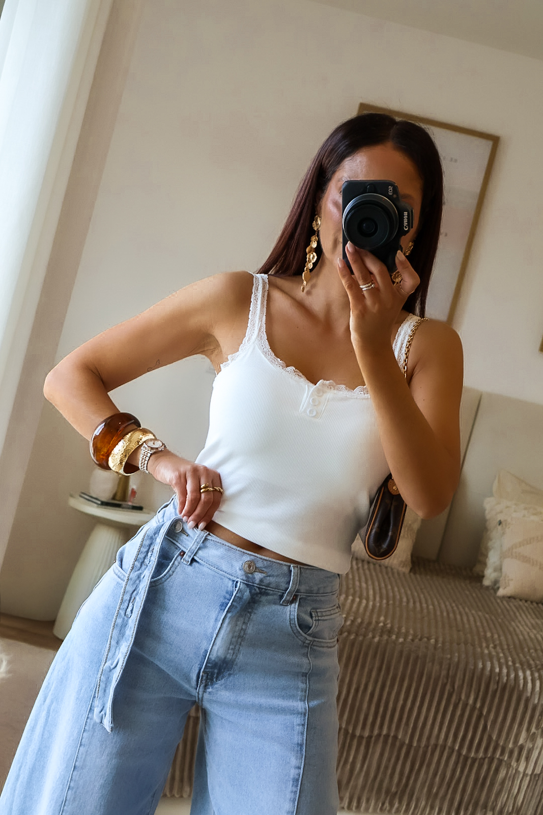 Top básico com elasticidade e detalhe em renda. Tecido macio. Traz copas.
